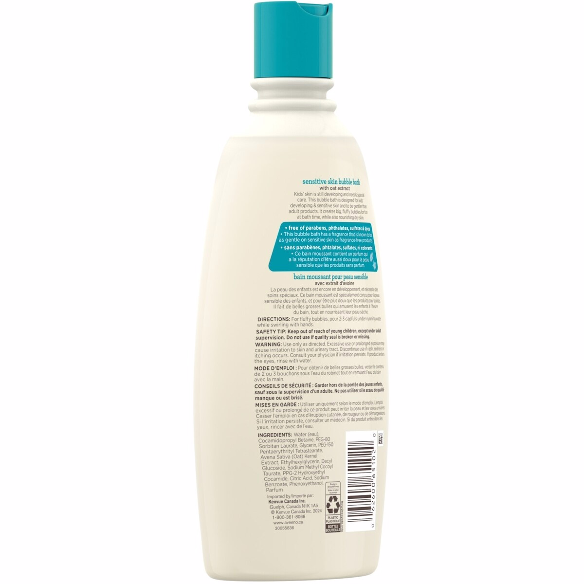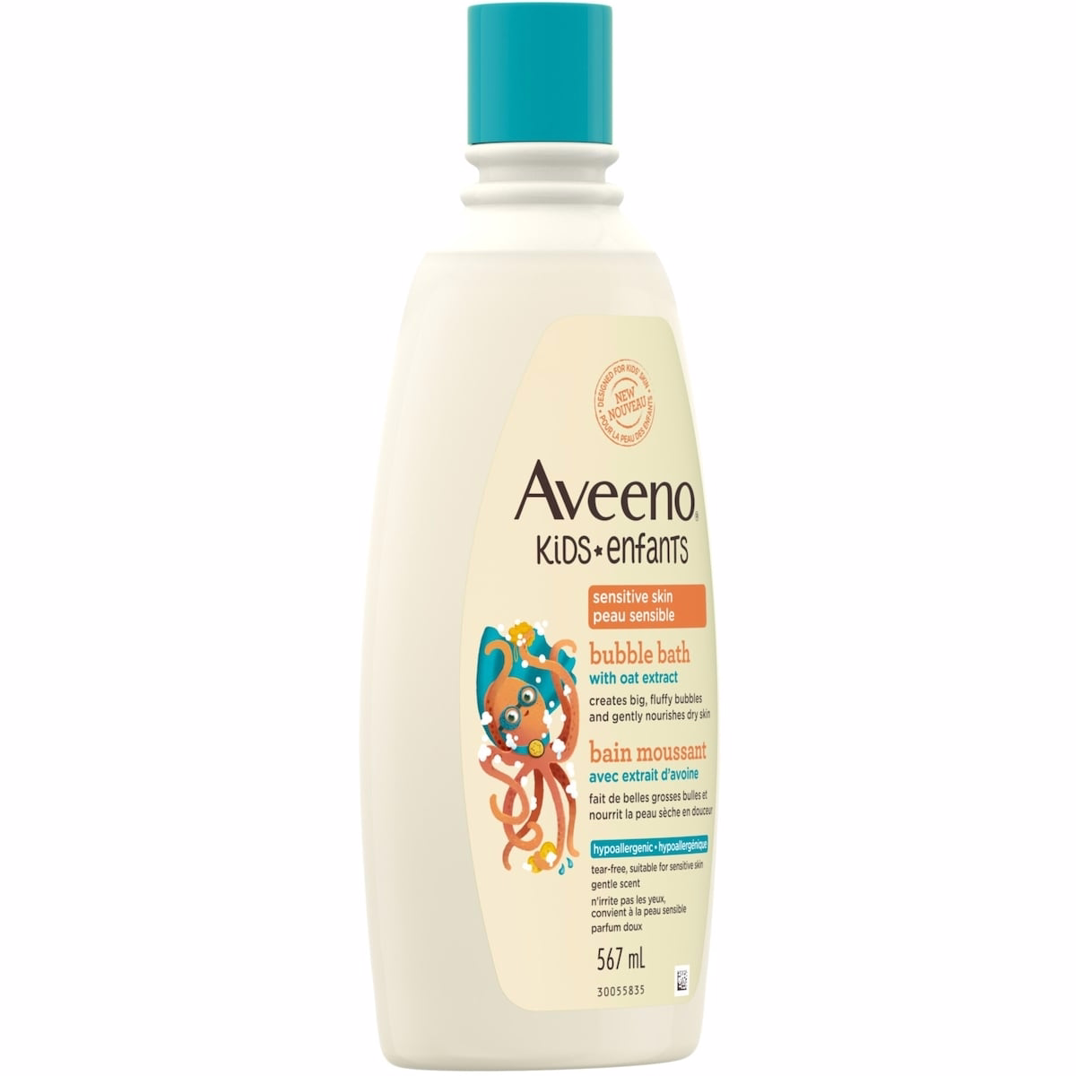 The Kids Sensitive Skin Bubble Bath, Dye-Free from Aveeno is a gentle cleaning product designed for your child’s developing skin. This 568 mL bottle provides a mild, soothing foam thanks to oat extract, creating big fluffy bubbles that make bath time fun while caring for delicate skin. It is formulated to be gentler than adult products and is suitable for kids who have dry or sensitive skin.