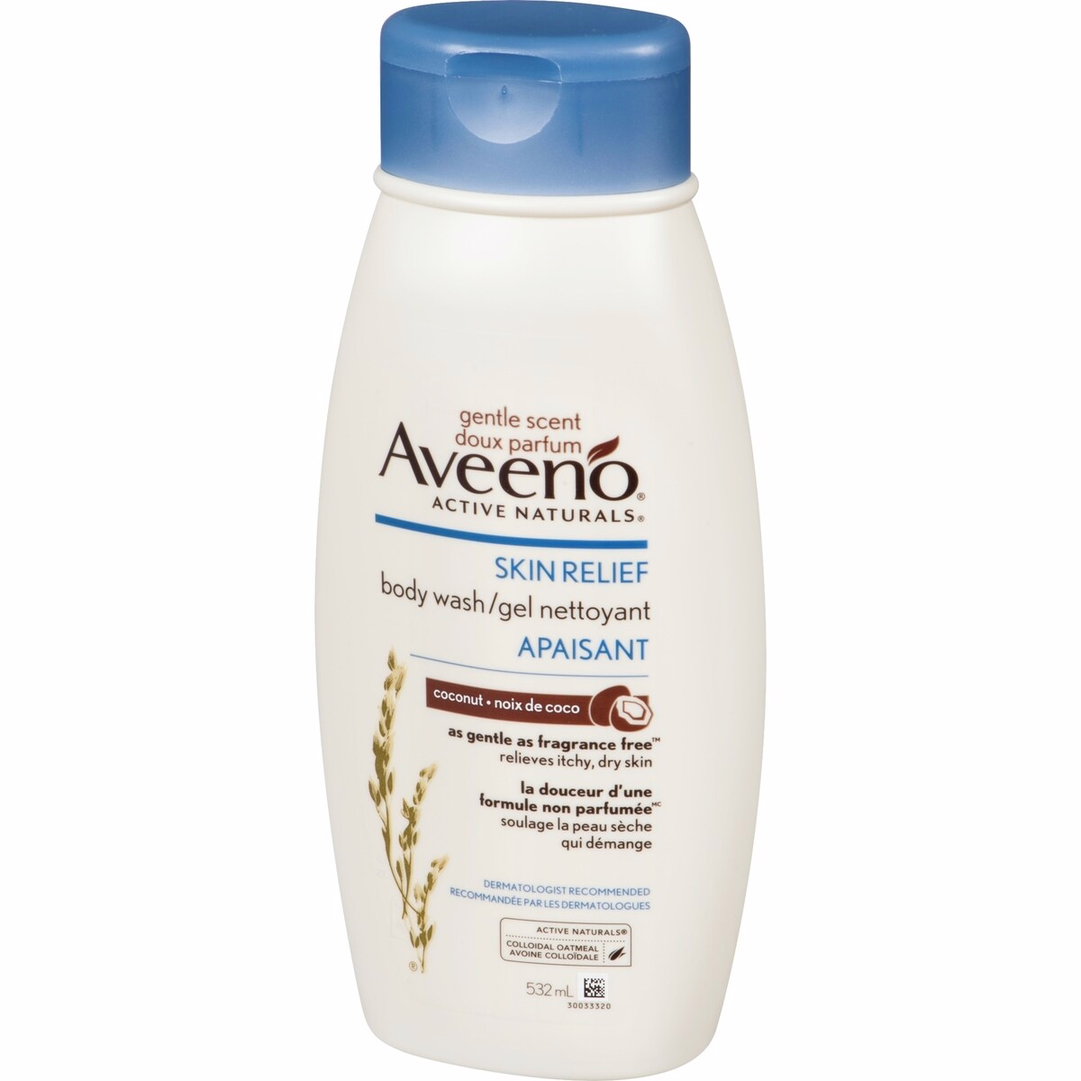 The full product name, Aveeno Skin Relief Body Wash with a Gentle Coconut Scent, is a soothing cleanser designed for sensitive skin that moisturizes as it cleanses. This 532 mL bottle uses a Triple Oat formula to help calm itchy, dry skin while delivering a gentle coconut scent that many users enjoy. Suitable for daily use, it supports a comforting skincare routine that starts in the shower and continues after drying off.