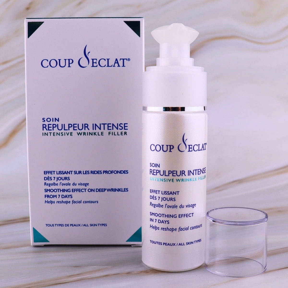 The Intensive Wrinkle Filler by Coup d’Eclat is a high-concentration hyaluronic acid formula combined with Iparzine®-4A to address visible signs of aging. This lightweight treatment hydrates deeply while supporting skin firmness and a youthful look, with the promise of smoothing deep wrinkles in 7 days. It’s designed for people seeking a plumping, radiance-boosting step in their anti-aging routine and can be used alone or as a makeup base.