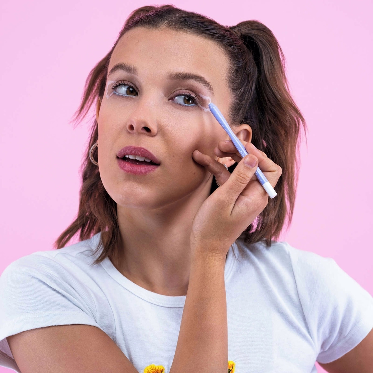 Gently rest the pencil along the upper lash line and draw a thin, even line moving from inner to outer corner.