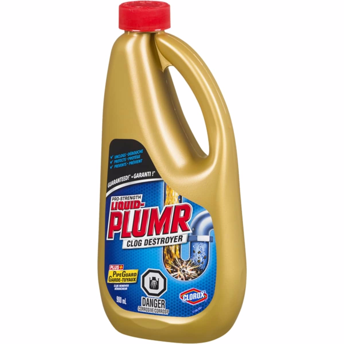 - 900 mL bottle of professional drain cleaner provides ample solution for stubborn blockages.