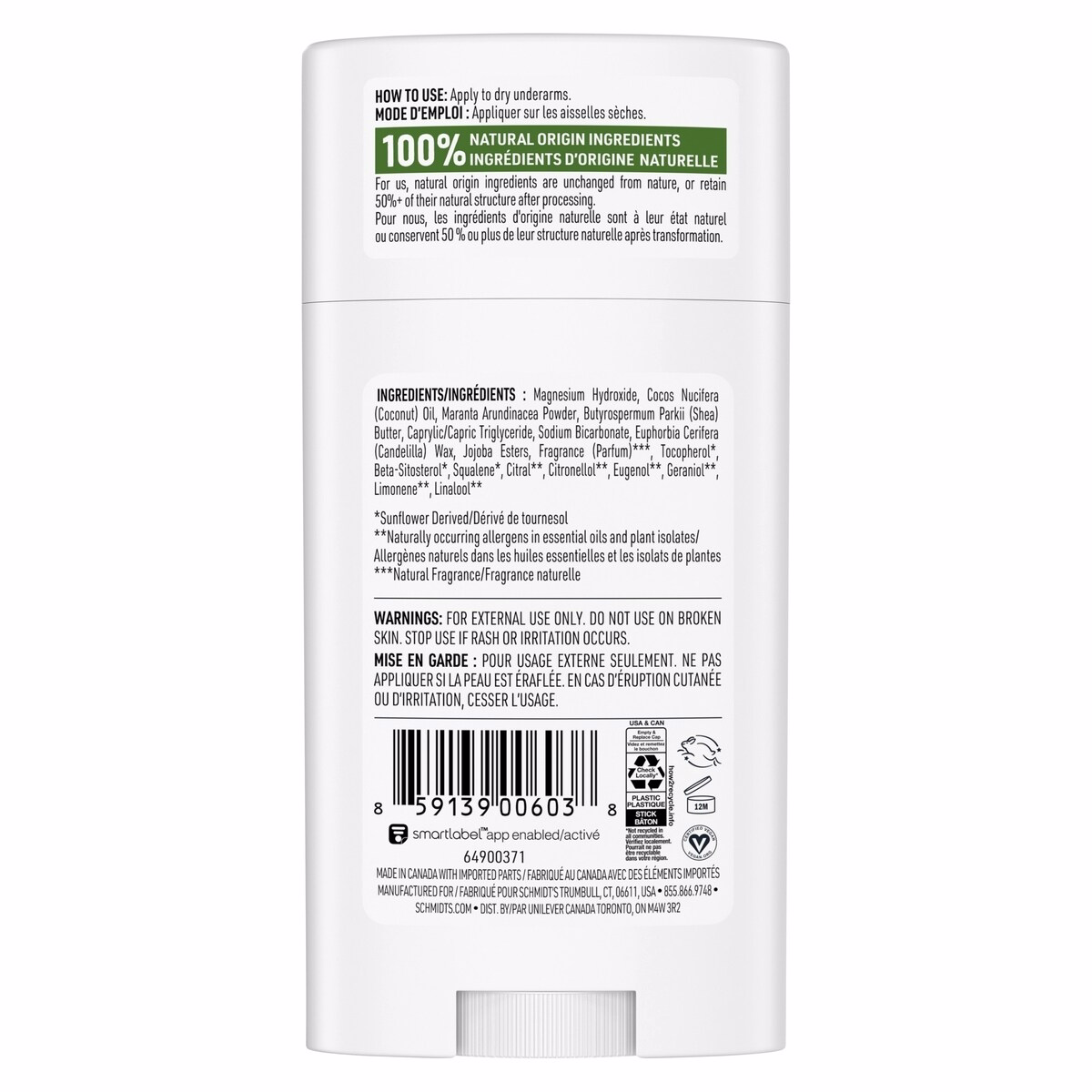 - Coconut Oil and Shea Butter nourish the skin and aid in a smooth glide of the deodorant stick.
