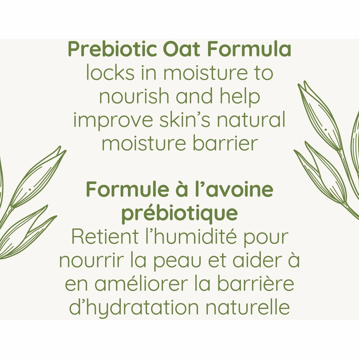 - Prebiotic oat formula absorbs quickly to nourish dry skin and support the skin’s natural moisture barrier.