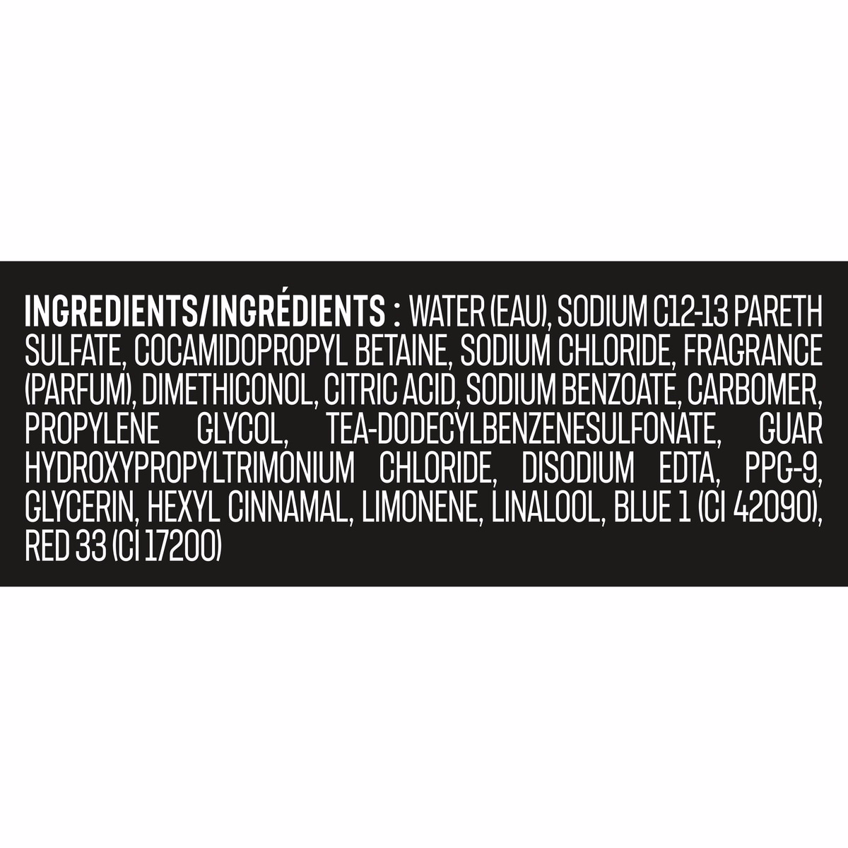 Aqua (water) serves as the solvent for the formula, helping to dissolve and deliver cleansing agents. Sodium Laureth Sulfate is a surfactant that produces cleansing foam to lift oils from hair and skin. Cocamidopropyl Betaine is a gentle surfactant derived from coconut that helps stabilize foam and improve mildness. Sodium Chloride adjusts viscosity to create a pleasing lather. Dimethiconol provides a lightweight conditioning feel on hair and skin. Parfum adds the signature scent. Carbomer thickens the gel base for easy application. Glycerin is a humectant that helps retain moisture. Citric Acid helps balance pH for a comfortable rinse. TEA Dodecylbenzenesulfonate acts as a surfactant to enhance cleansing. Tetrasodium EDTA helps stabilize the formula. Propylene Glycol acts as a humectant and solvent. DMDM Hydantoin is a preservative. PPG9 is a solvent and humectant. Methylchloroisothiazolinone and Methylisothiazolinone are preservatives used in small amounts. CI 42090 and CI 17200 provide color.