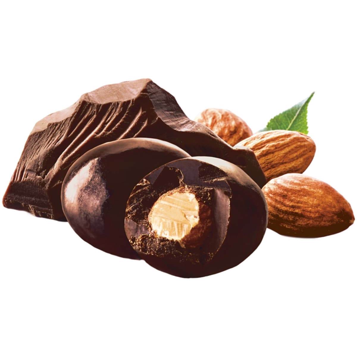 You can expect a crisp almond center coated with a smooth, slightly glossy dark chocolate layer, delivering a balanced sweet and nutty profile.