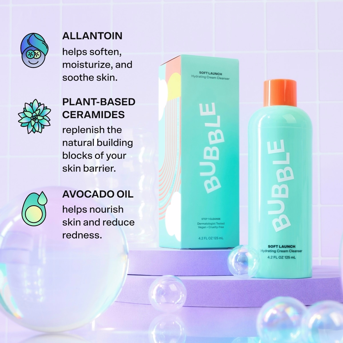 Bubble’s Soft Launch Hydrating Cream Cleanser is a delicate daily cleanser designed for dry, sensitive skin. This light, creamy formula lathers into a soft foam that cleans without leaving skin feeling stripped, tight, or dry. Use Soft Launch on its own or as the second step in a double cleanse. This 125 mL tube is ideal for daily facial care and suitable for those seeking nourishment as they cleanse.