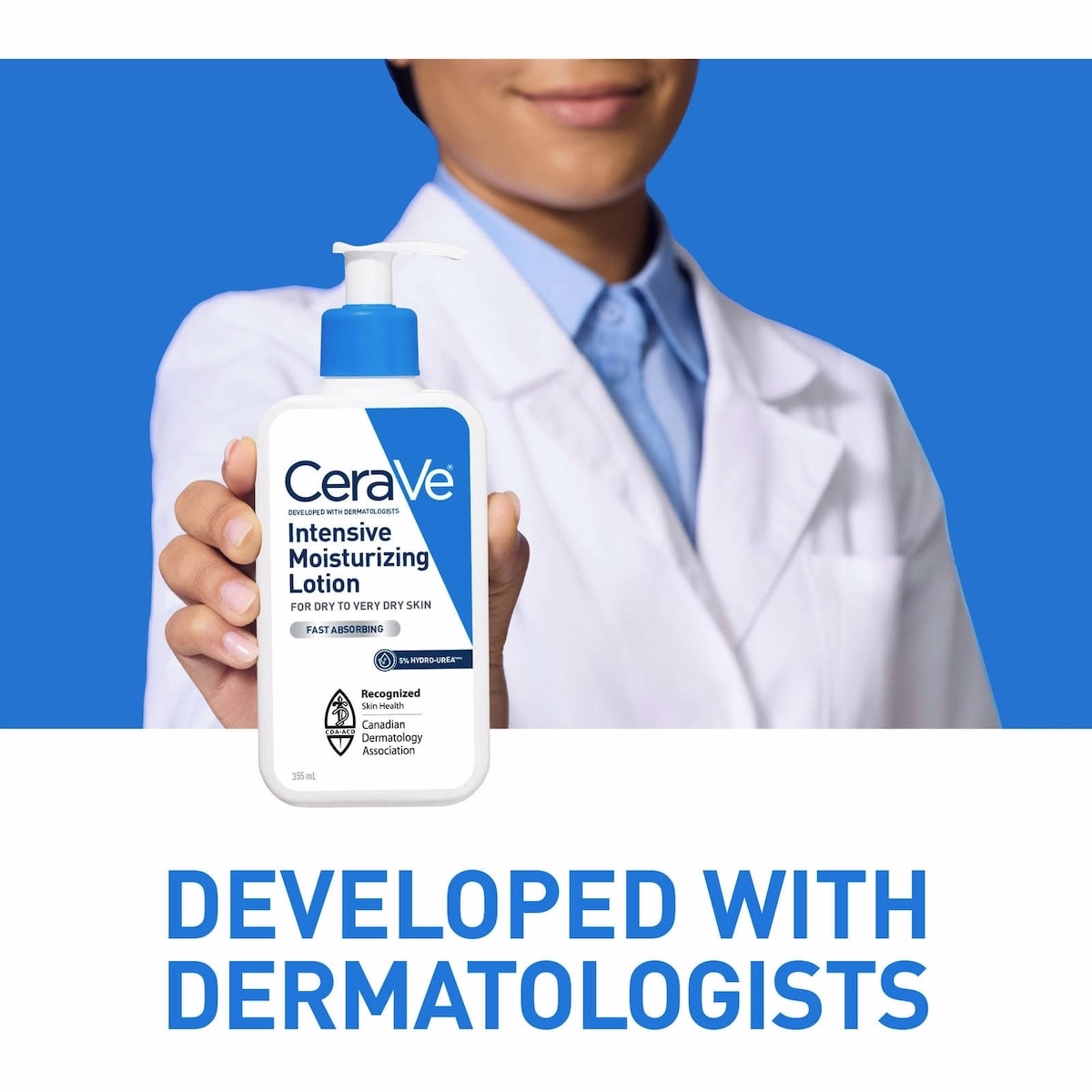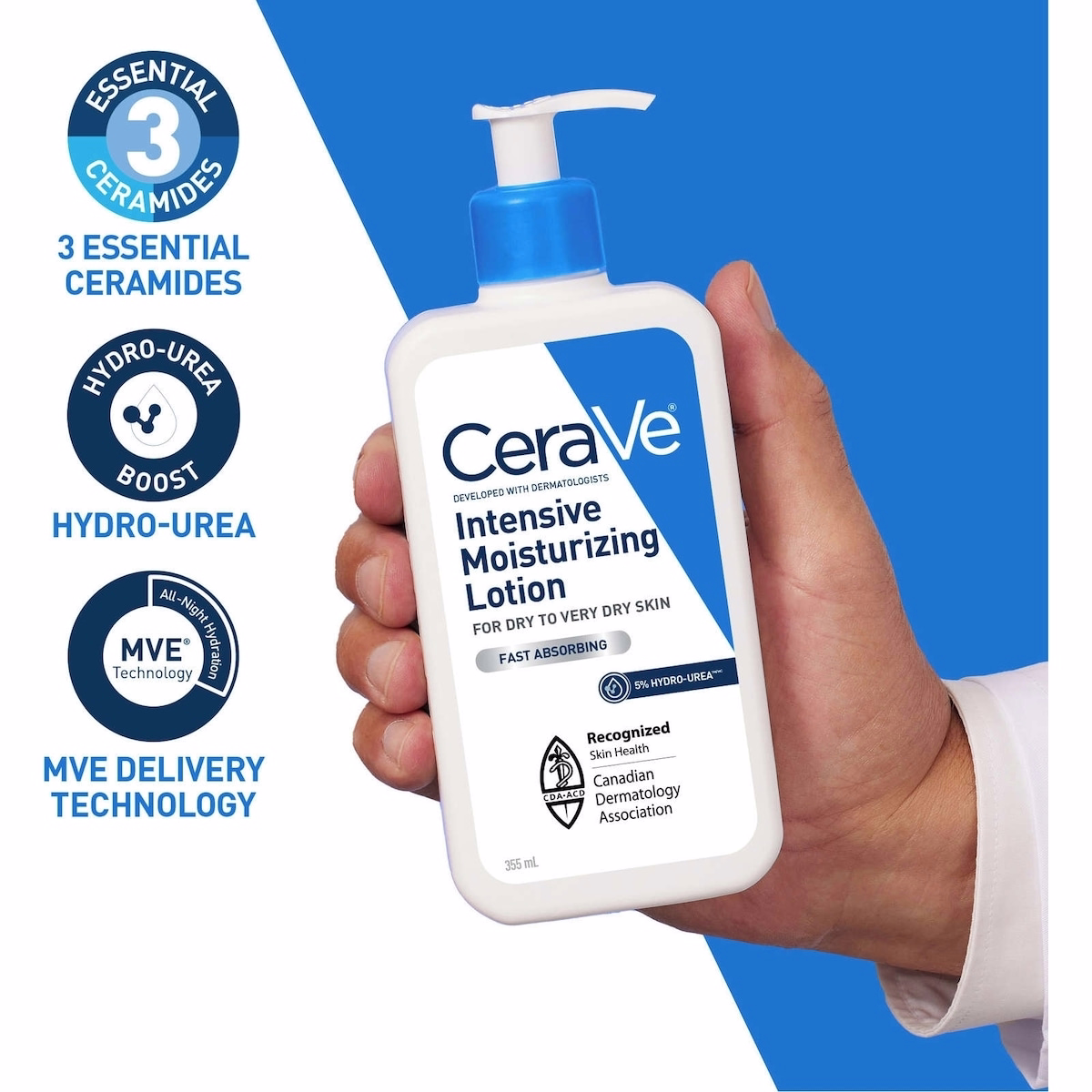 The Cerave Intensive Moisturizing Lotion 5% Hydro-Urea TM/MC delivers deep, lasting hydration for dry to very dry skin. This fragrance-free, pH-balanced formula helps restore the skin barrier and soothe itch from dryness with a rich, non-greasy feel. It features 3 essential ceramides and Shea Butter, plus MVE Technology for controlled, long-lasting hydration, so skin stays comfortable throughout the day.