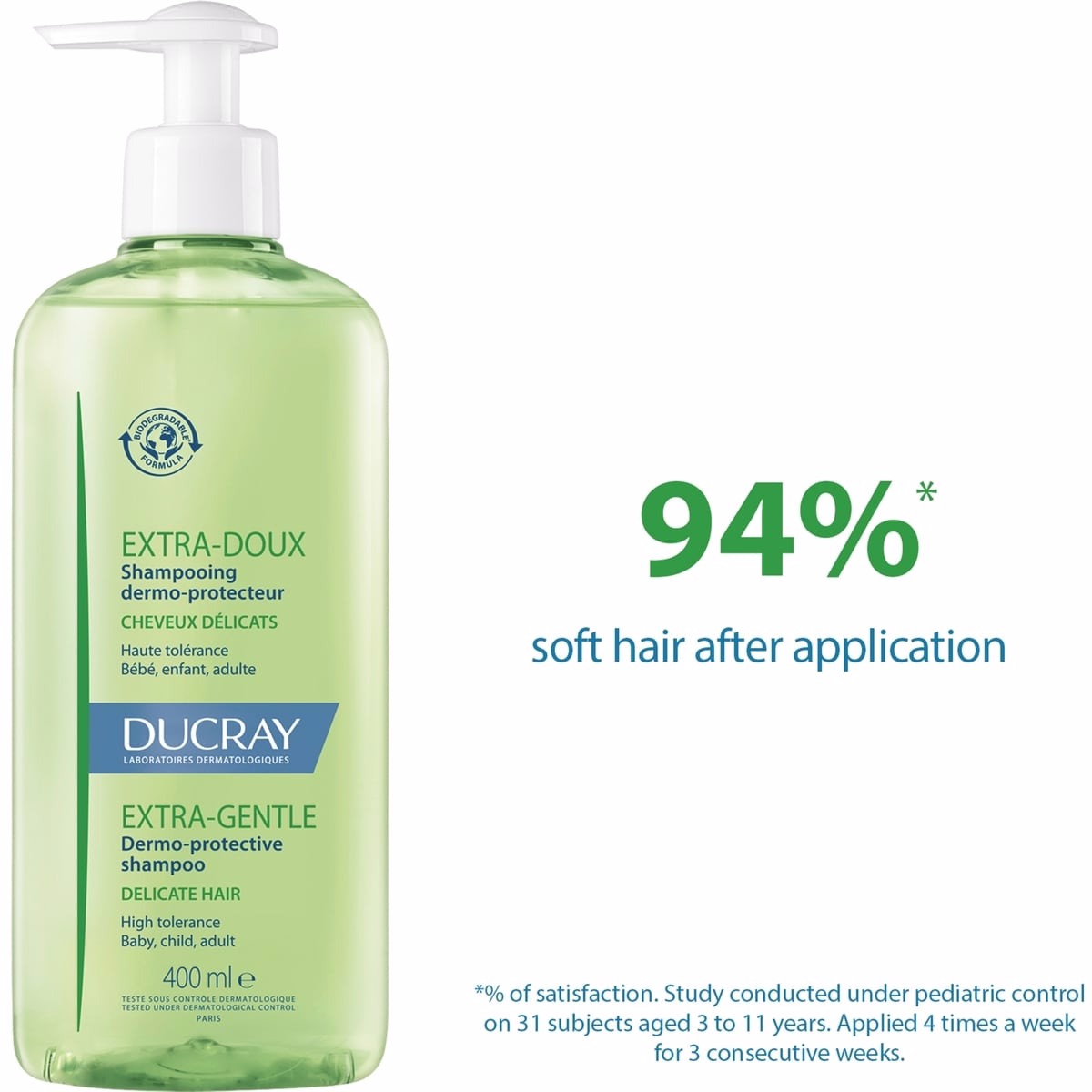 The Ducray Extra-Gentle Shampoo Dermo-Protective New Formula is a gentle cleansing solution designed for the whole family, starting from 1 month of life. It respects the natural balance of the scalp while delivering shine, hydration, and suppleness to every strand. This is an everyday shampoo that cleanses effectively without irritation and features an eco-friendly profile with 91% natural-origin ingredients, a biodegradable formula, and recyclable packaging. The hypoallergenic fragrance is crafted to minimize potential irritation for sensitive users, and the absence of dyes or silicones adds to its skin-friendly nature.