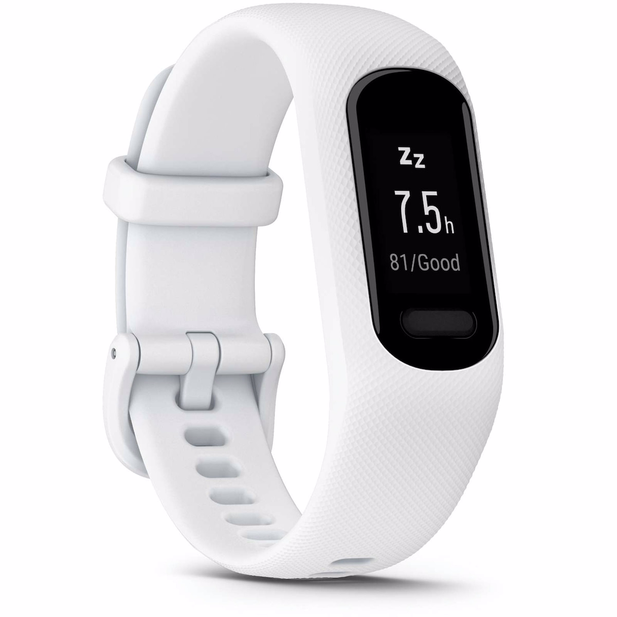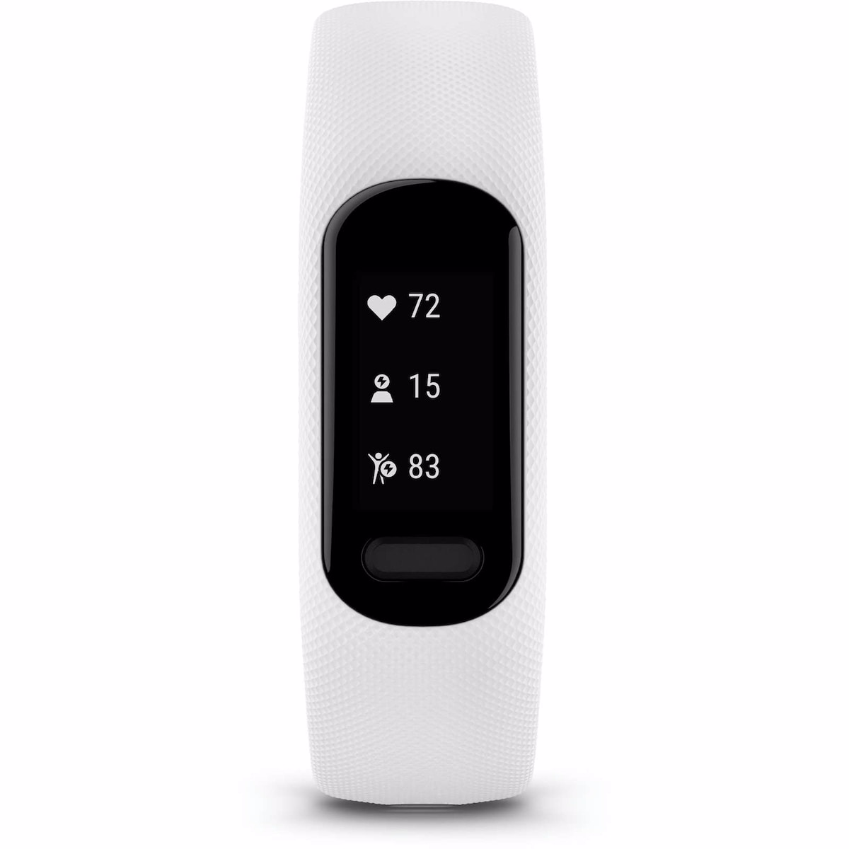 The Garmin Vivosmart 5 Fitness Tracker White is a comfortable, easy-to-use wearable designed to help you monitor your health and stay active from sunup to sundown. This device tracks heart rate, sleep, stress, hydration reminders, and daily activity, making it a reliable companion for everyday wellness and fitness goals.