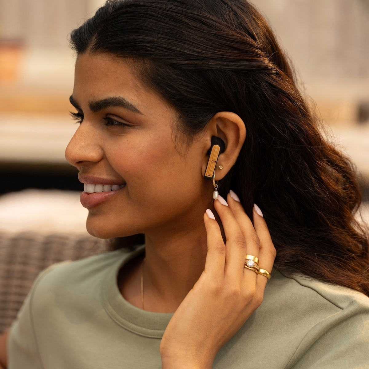 Place the earbuds in your ears to ensure a comfortable, non-occluding fit. Play a short track to confirm balanced sound and proper seal without discomfort.