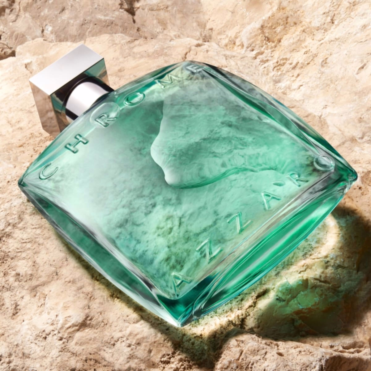 Spray Azzaro Chrome Azure 8 inches from your pulse points: the neck, torso and wrists.