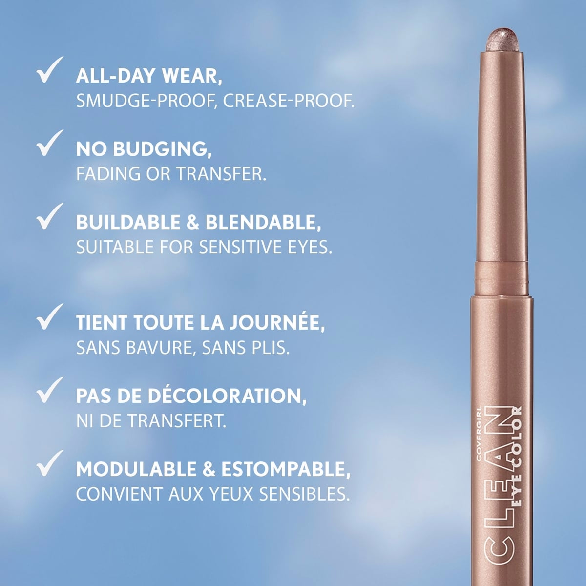 The Clean Eye Color, Eyeshadow Sticks, Ultra Creamy Formula, Lightweight, Buildable Formula, Lasts All Day, Smudge-Proof is a versatile eye makeup option designed to deliver high-impact, shimmery color that lasts from morning to night. This variant, French Violet – 340, is crafted for all skin tones and works beautifully alone or blended with other shades.