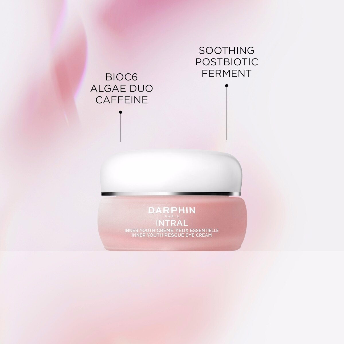 The Intral Inner Youth rescue eye cream by Darphin is an expert refreshing gel-like cream designed to help fight visible irritation and signs of fatigue around the delicate eye area. This fragrance-free, silicone-free formula is powered by active soothing BioC6 and Soothing Postbiotic Ferment to restore skin to a healthier state faster and help inhibit the look of redness and irritation. Caffeine energizes the eye area to visibly depuff and reduce the appearance of dark circles. Suitable for sensitive skin and ophthalmologist tested, it is designed for those seeking a calm, energized eye contour with minimal irritation.