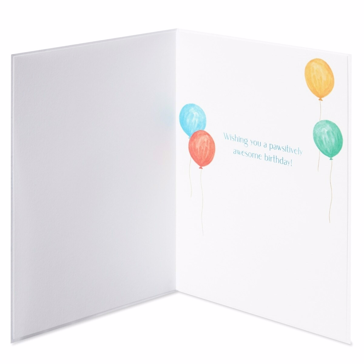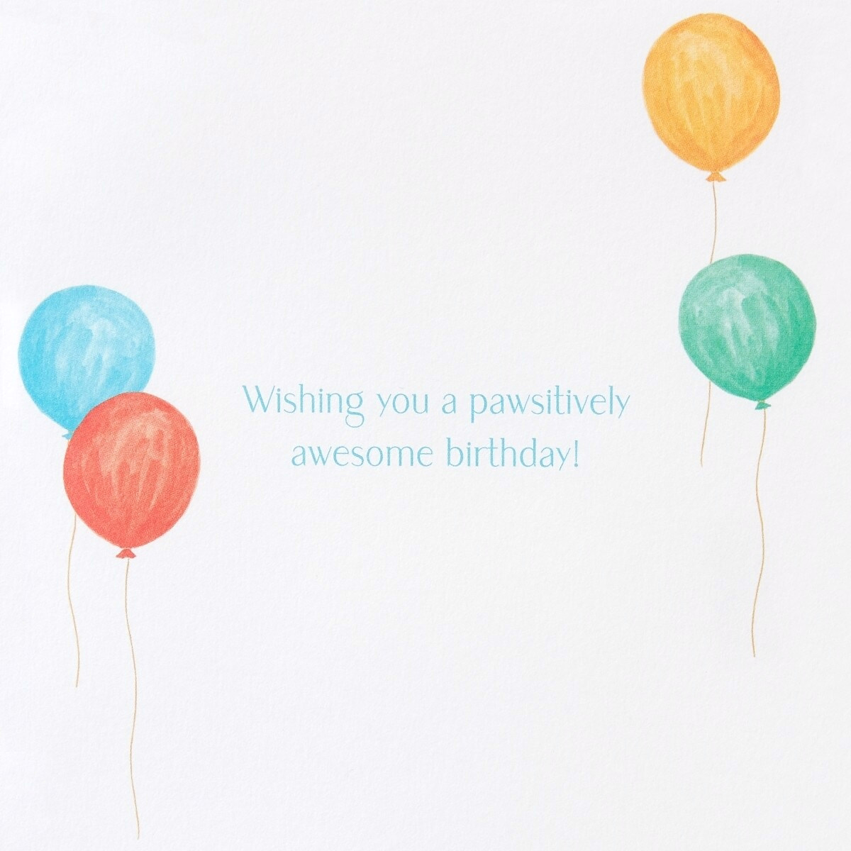 • Inside message: Wishing you a pawsitively awesome birthday! — friendly, lighthearted sentiment to complement your personal note.