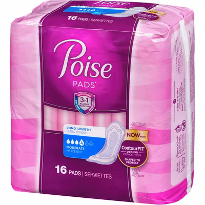 - 16 Poise Incontinence Moderate Absorbency Long Pads—packaging may vary