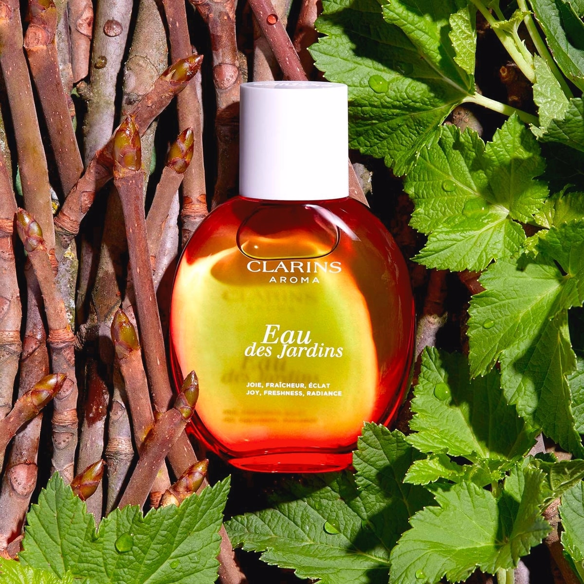 Enjoy the Eau des Jardins experience as a joyful expression of nature and vitality, wrapped in a bright, uplifting scent that complements a modern skincare routine.