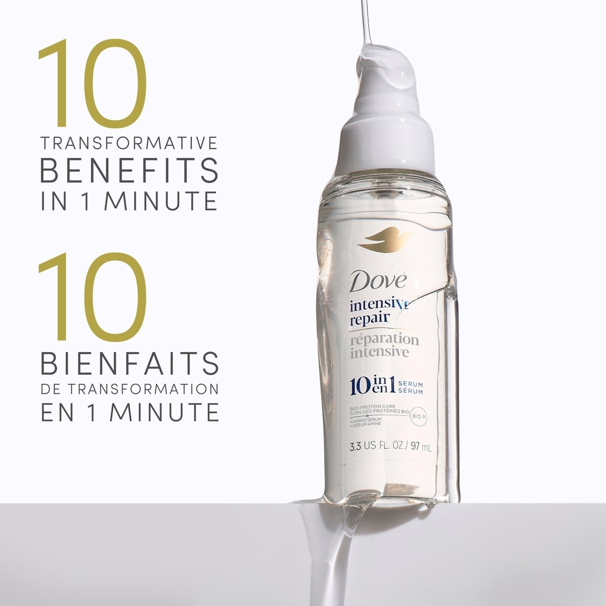 This serum nourishes damaged hair with Amino Serum and Bio-Protein Care technology to help regenerate strength and reduce protein loss. It delivers 10 benefits in 1 minute, including 72H damage protection and 72H smoothness.