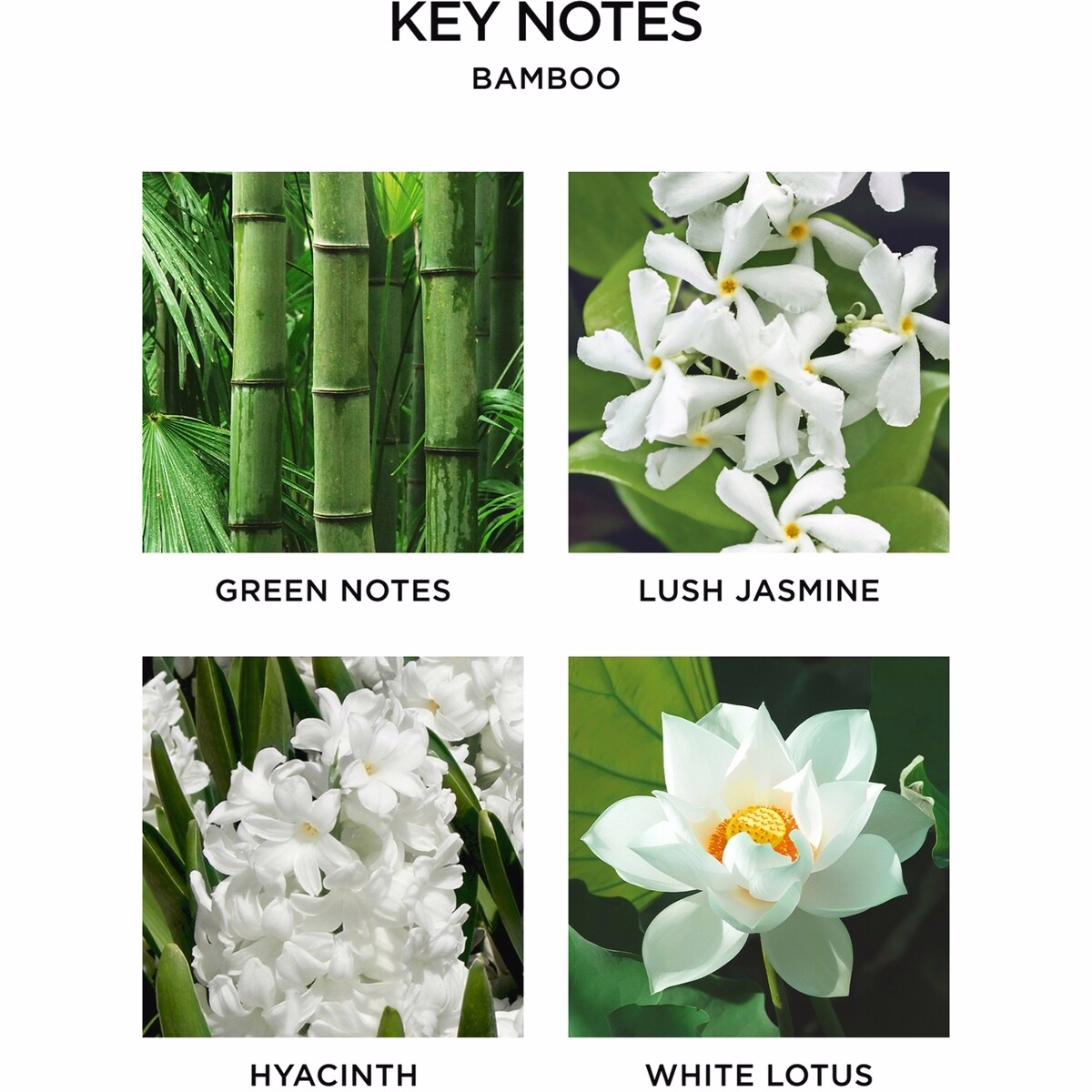 - The Bamboo variant offers a clean, nature-inspired profile featuring white florals, green notes, and citrus accents.