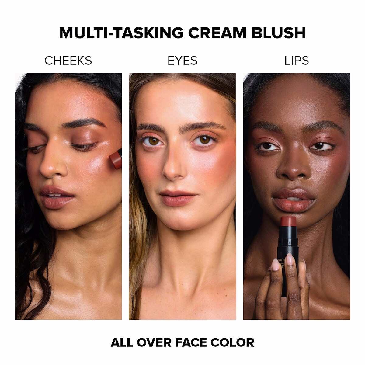 - All-over dewy color: the NUDIES BLOOM blush stick texture delivers a fresh glaze across cheeks, eyes, and lips for a cohesive glow.