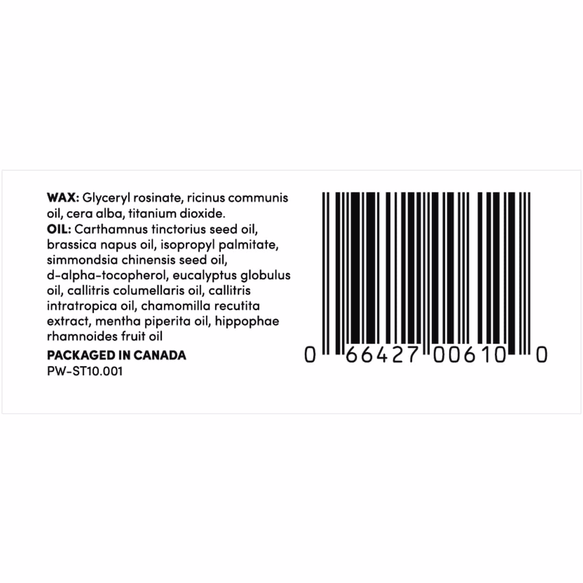 The wax mix includes Glyceryl Rosinate (pine resin) for adherence, Castor Seed Oil and Beeswax for a smooth application, and Titanium Dioxide for texture. The included Ultra Soothe Oil helps calm skin after waxing.