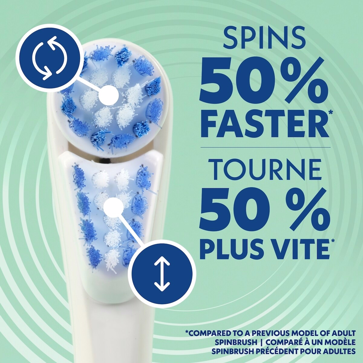 Kiss plaque goodbye when you brush with the latest Spinbrush PRO CLEAN Battery-Powered Toothbrush! The brush head spins 50% faster than the previous model of adult Spinbrush and removes 70% more plaque vs. a manual toothbrush in hard-to-reach places. Other sleek design updates include a quieter experience and thinner handle than the previous model. Color-Wear soft bristles fade over time to help remind you when it’s time to replace the electric brush head. This cleaning battery toothbrush includes two (2) replaceable AA batteries. Keep your handle to save money and plastic with Spinbrush brand refill packs! This Spinbrush battery-powered travel electric toothbrush is not tested on animals. It’s time to replace your disposable toothbrush and Spin your way to a spotless smile!