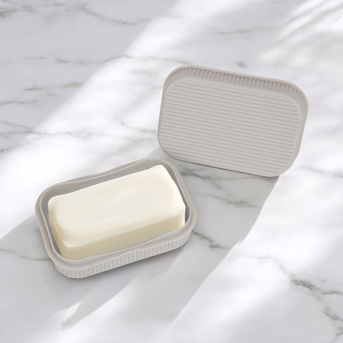 Set the soap so the ribbed surfaces contact the soap for a firm grip and reduced movement during travel.