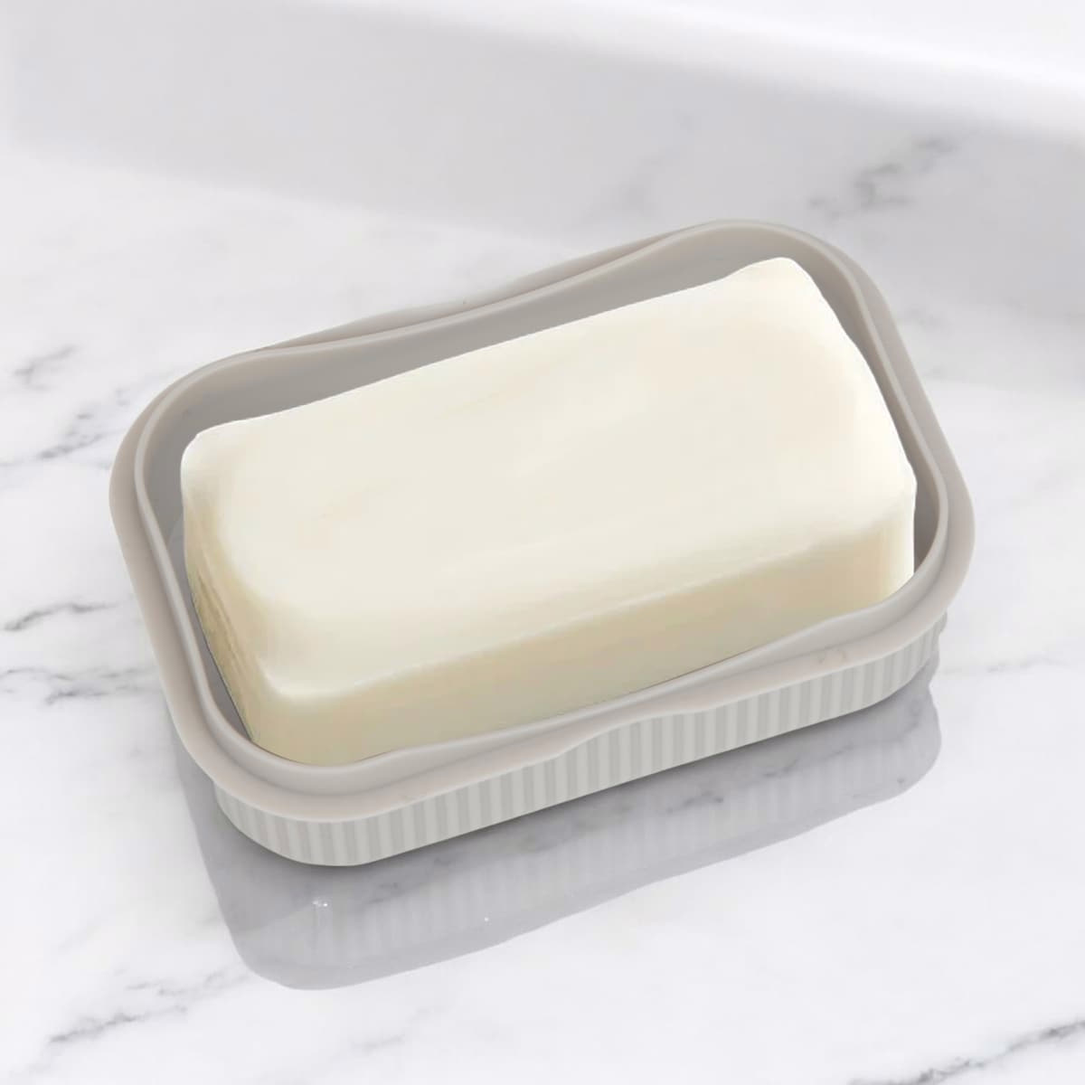 • Ribbed all-around design helps grip the soap and reduce wobble during transport.
