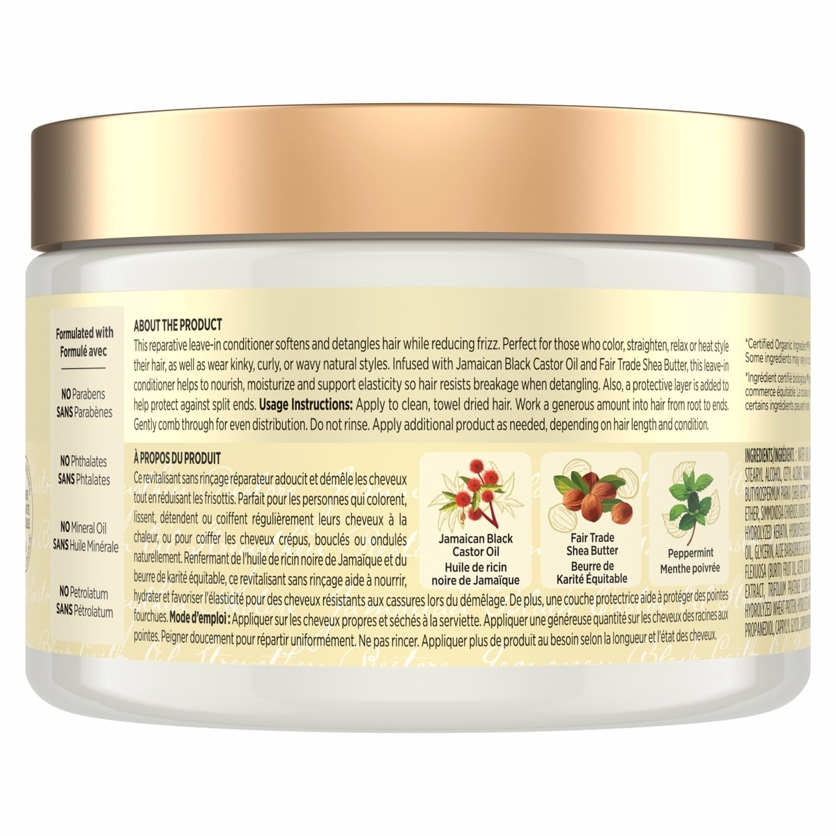 - Softens and detangles hair, reducing breakage during detangling thanks to nourishing oils and butters.