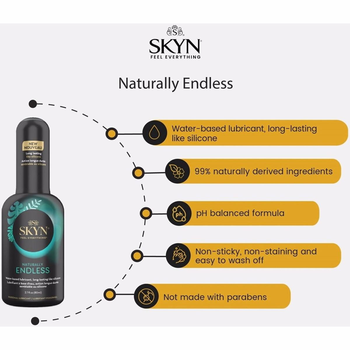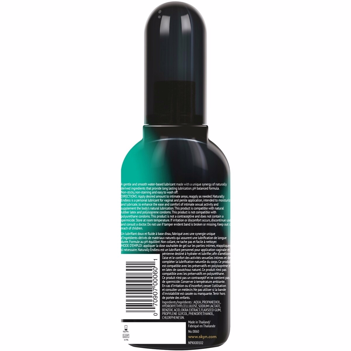 The Naturally Endless Personal Lubricant by Skyn is a water-based formula designed to provide long-lasting lubrication with a feel similar to silicone. This variant uses a synergy of 99% naturally derived ingredients to support comfortable intimacy for both partners. The pH balanced formula is paraben-free, non-sticky, non-staining and easy to wash off, making it a reliable choice for daily or occasional use. The product features an easy pump for one-handed operation and a discreet, elegant pack that fits in a purse or drawer.