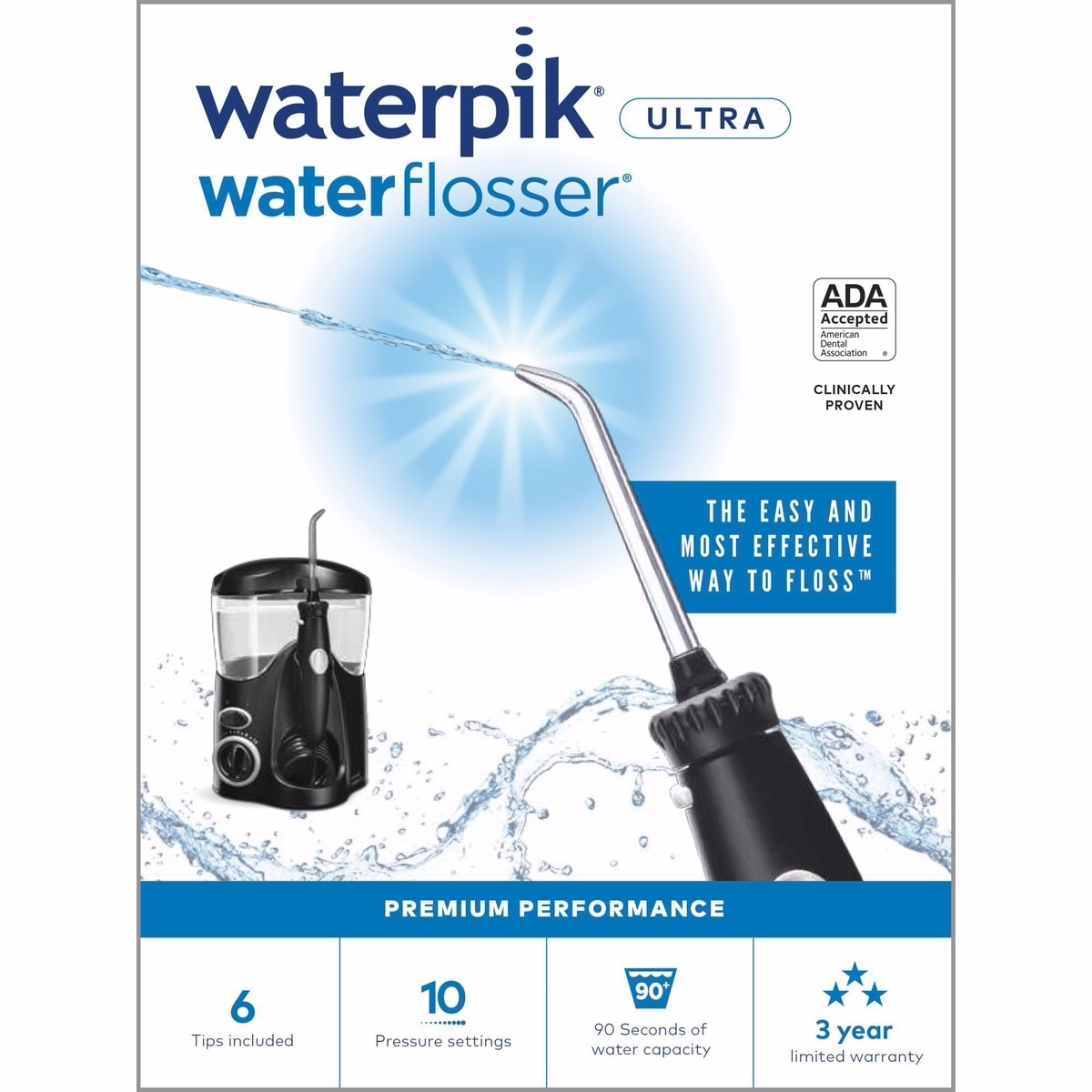 The Waterpik Ultra Water Flosser is a powerful and easy way to floss, designed for anyone who wants a cleaner, healthier mouth. This model helps reduce plaque and gingivitis more effectively than traditional flossing, and it comes with 6 tips to address braces, implants, crowns, bridges, and veneers.