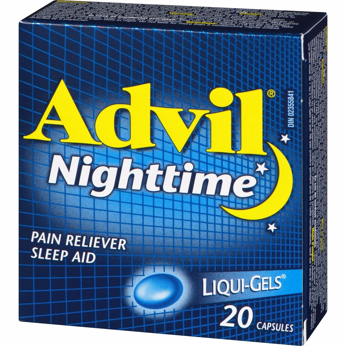Adv il Nighttime Liqui-Gels, 20 Count combine 200 mg ibuprofen and 25 mg diphenhydramine to relieve nighttime pain and help you sleep, for adults 16–65.