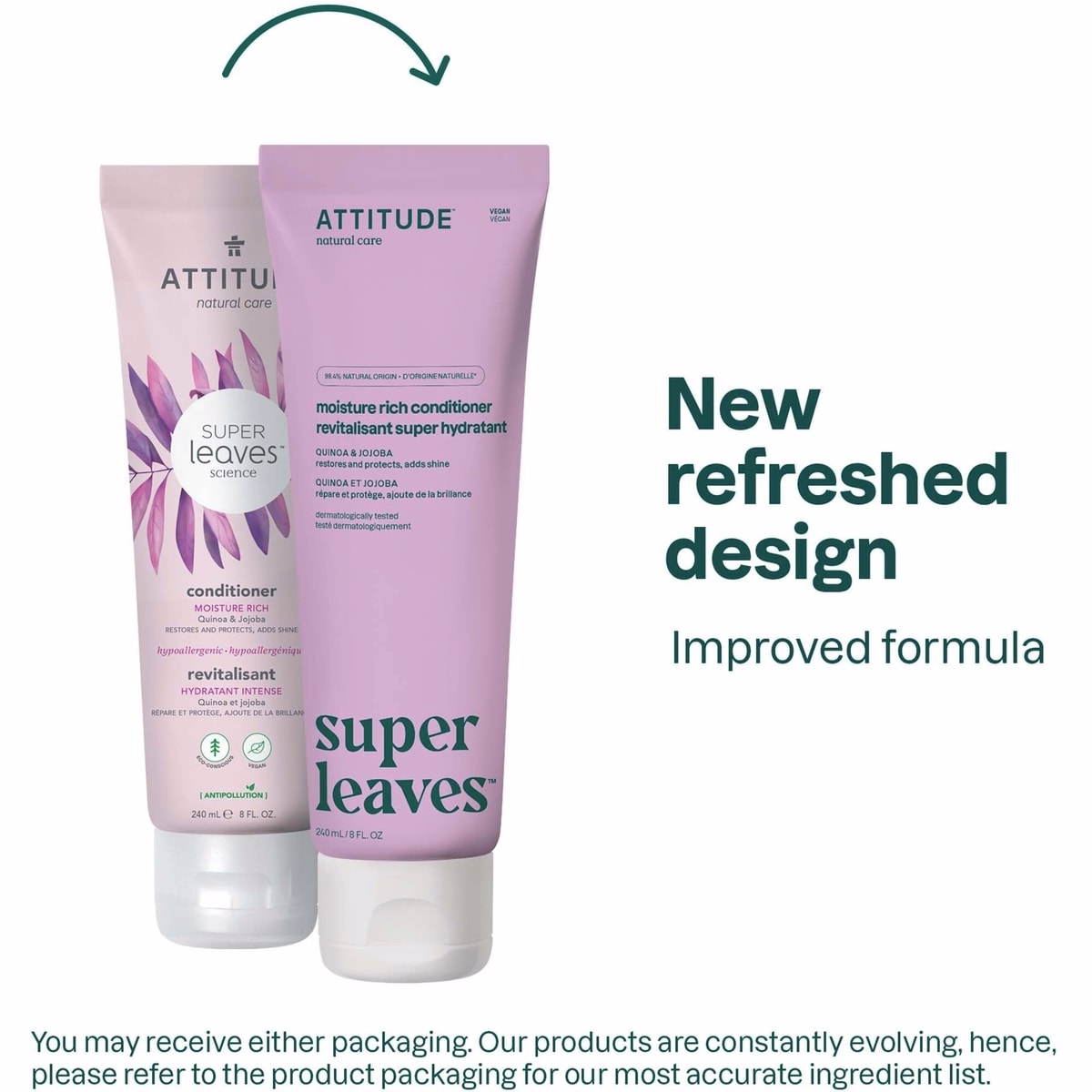 The Super Leaves Conditioner Moisture Rich from Attitude is a moisture-boosting conditioner designed to nourish, repair and protect dull, dry, and brittle hair. Enriched with quinoa and jojoba proteins, it delivers shine and deep hydration while maintaining a lightweight, non-weighed-down feel. This conditioner is EWG Verified™, hypoallergenic and dermatologically-tested, making it a trustworthy choice for sensitive scalps. For best results, pair with the Moisture Rich Shampoo before applying conditioner to maximize hydration from root to tip.