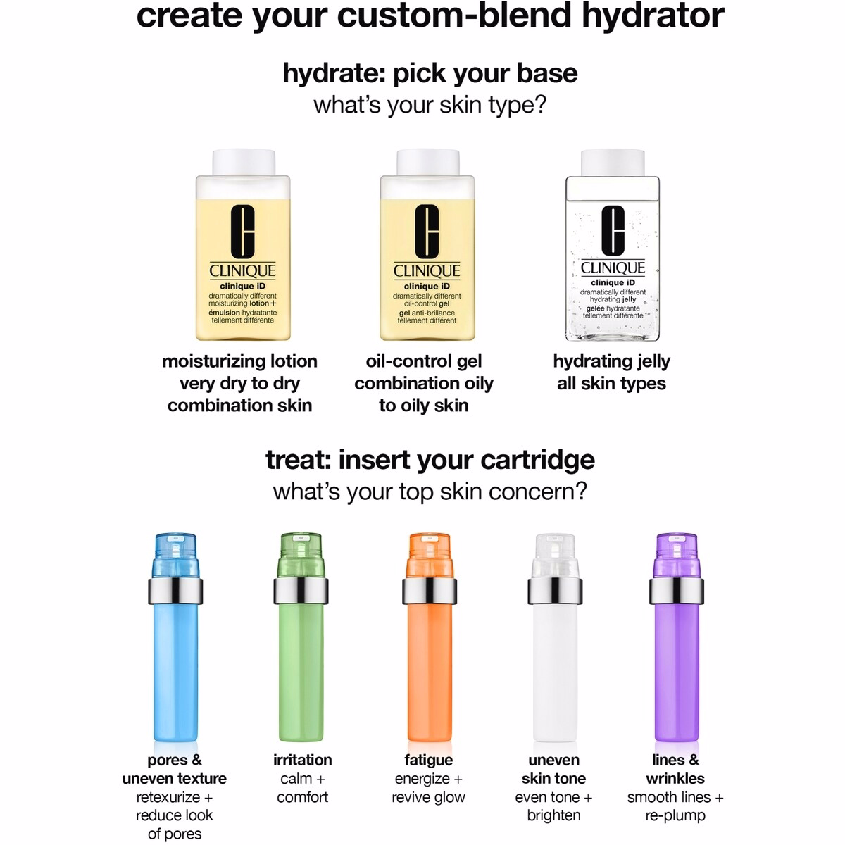 The Clinique iD Moisturizer + Concentrate for Irritation is a first-of-its-kind custom-blend hydrator that hydrates and treats your main skin concern, your way. It combines a hydration base from the Dramatically Different Moisturizer with an Active Cartridge Concentrate for Irritation to target irritated skin while delivering all‑day moisture.