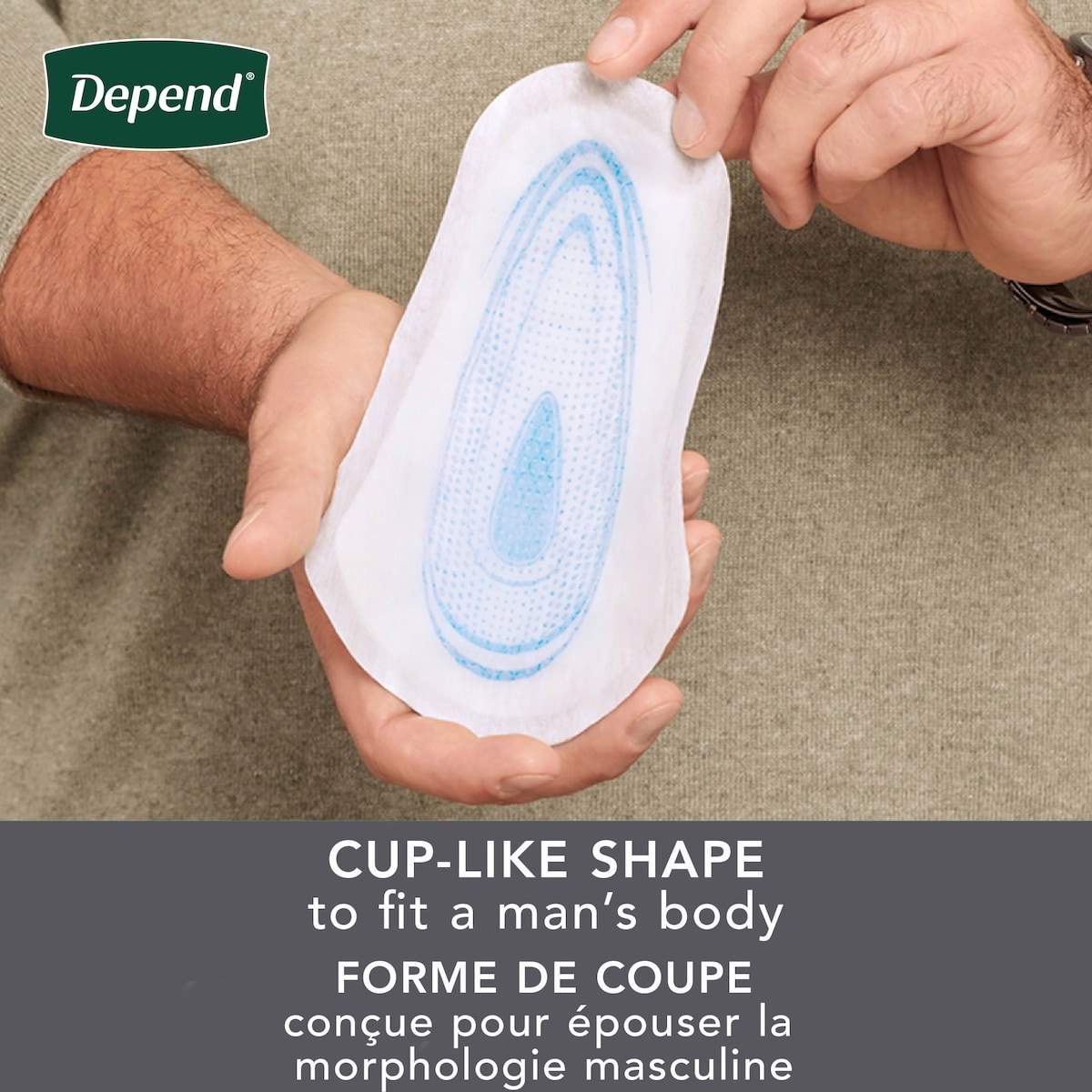 Place the pad inside your underwear with the arrow facing up and align it with your body for a secure, cup-like fit.