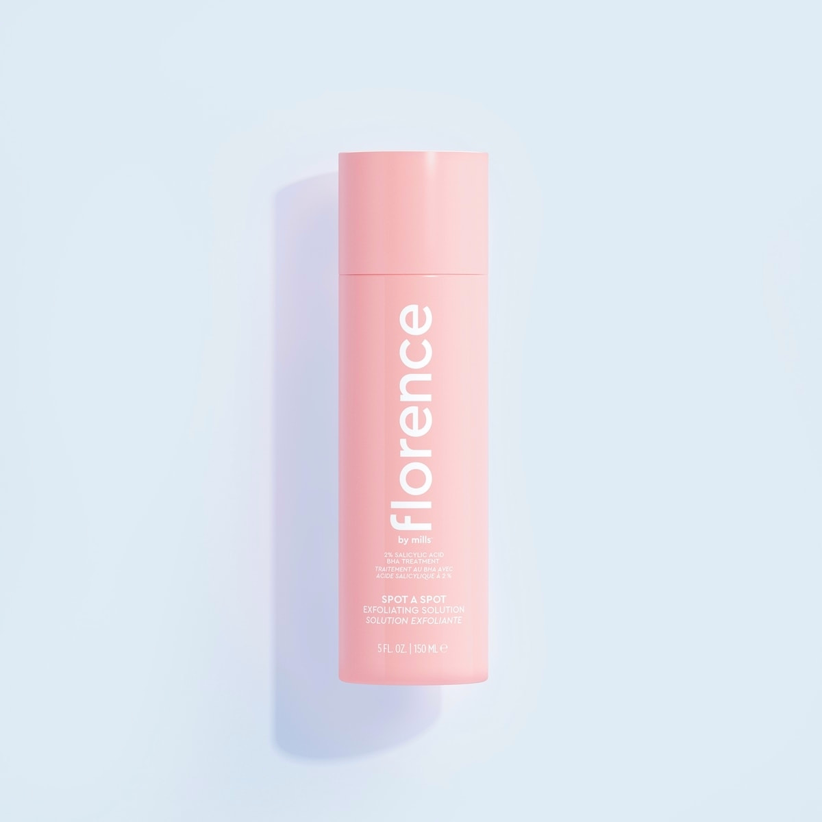Spot A Spot Exfoliating Solution by Florence By Mills is a maximum strength 2% salicylic acid treatment, 150 mL, infused with allantoin and amino acids to calm skin and clear pores for healthier-looking skin.