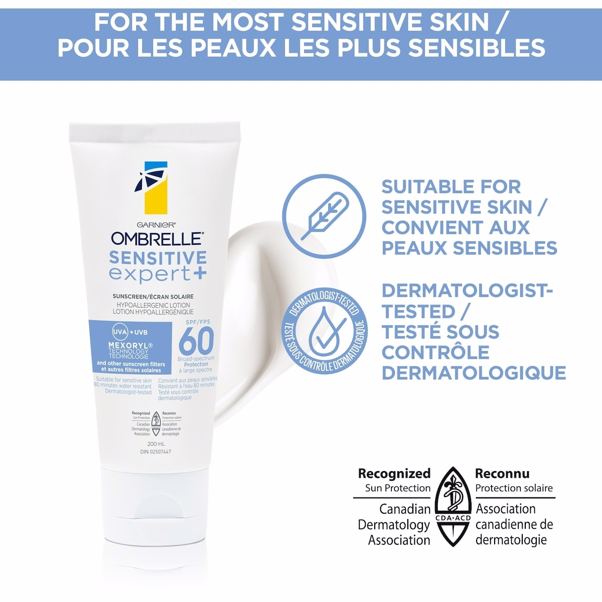 Yes. The formula is hypoallergenic and dermatologist-tested for sensitive skin, fragrance-free and colourant-free to minimize irritation.