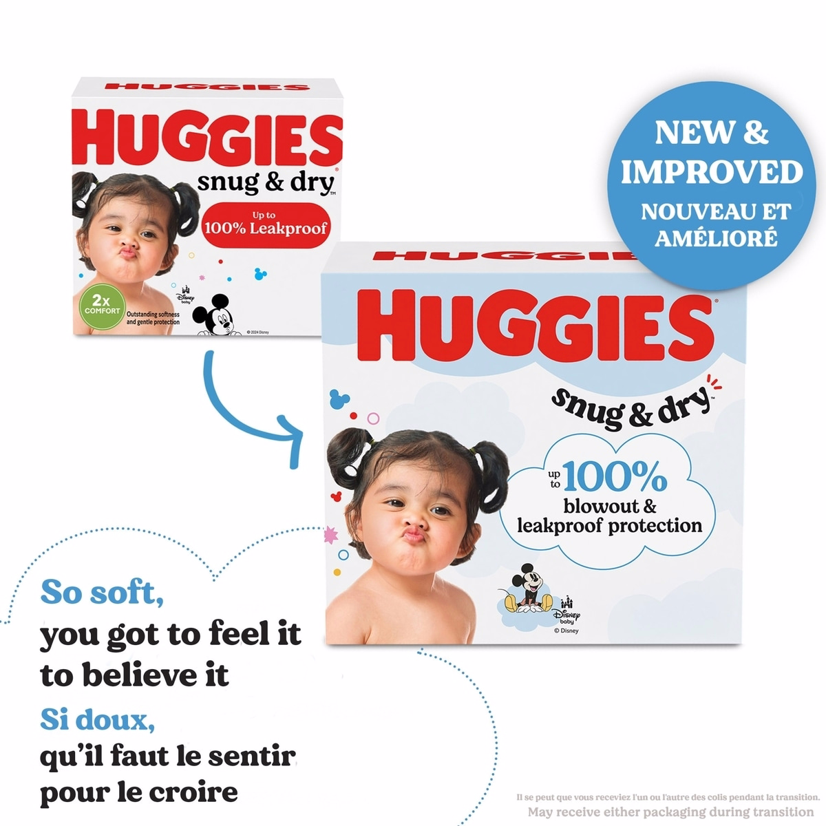 - NEW & IMPROVED 2X Softness – CloudSoft absorbent layers and waistband create a plush feel against baby skin.