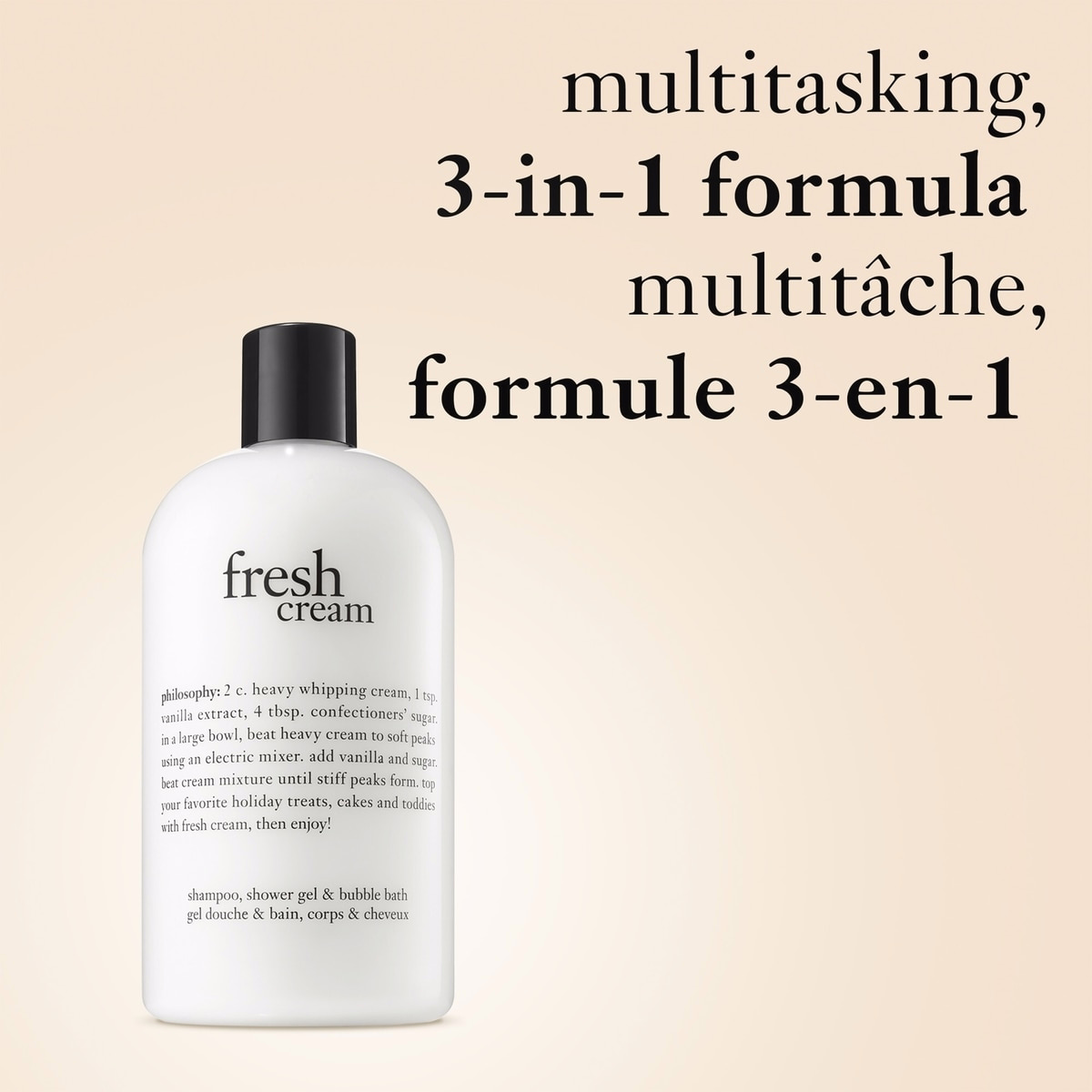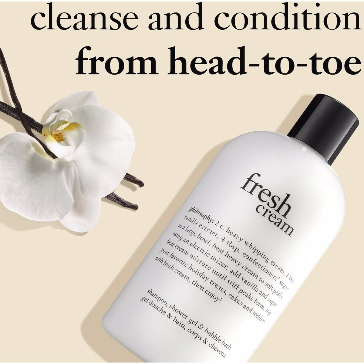 The Philosophy Fresh Cream Shampoo, Shower Gel & Bubble Bath for Women is a versatile 480 mL formula designed to cleanse, condition, and soften skin and hair from head to toe while delivering a fabulously fresh vanilla and cream scent that feels like a pampering ritual.