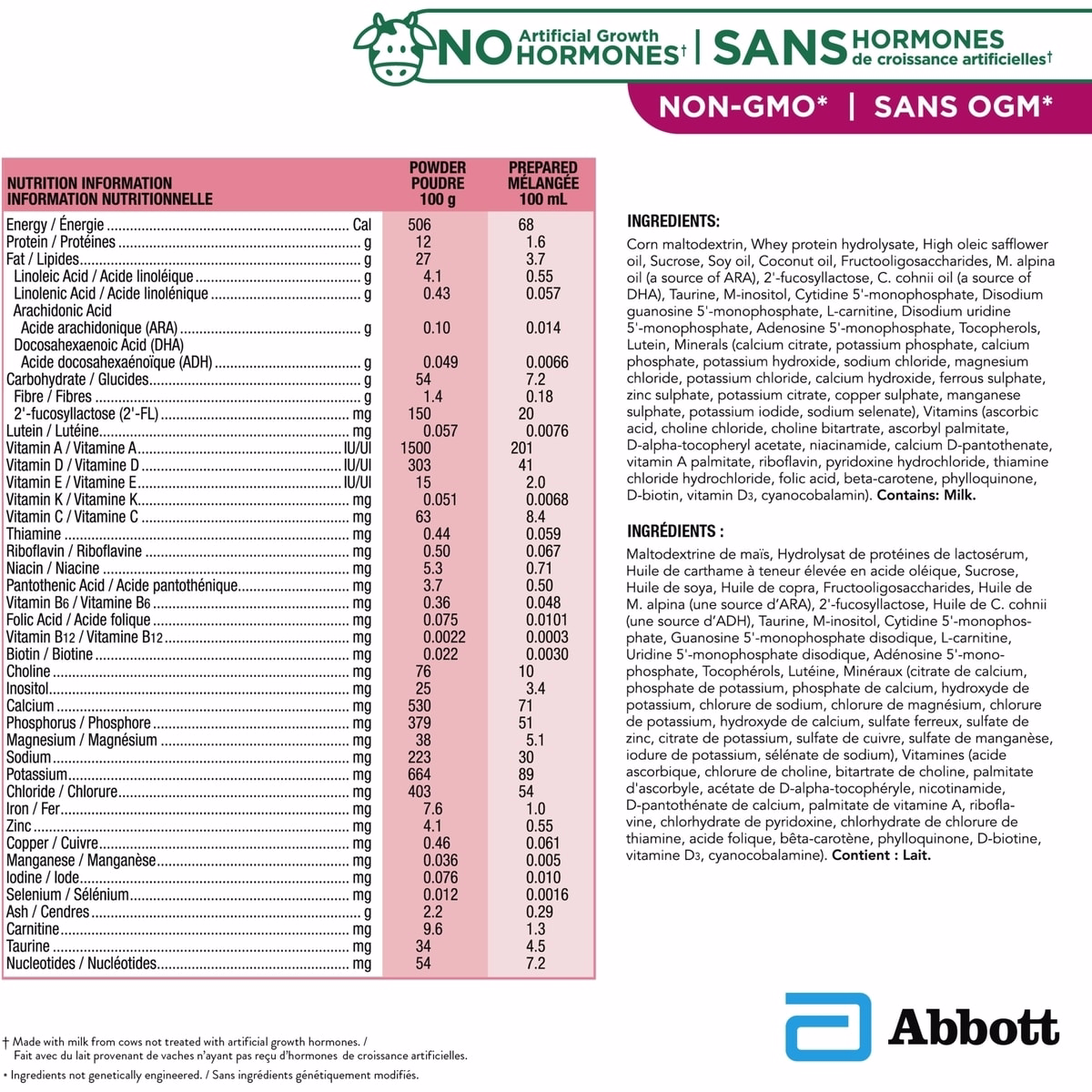 The product is intended for infants from 0+ months. Follow the included product instructions for dosage and preparation, and keep out of reach of children.