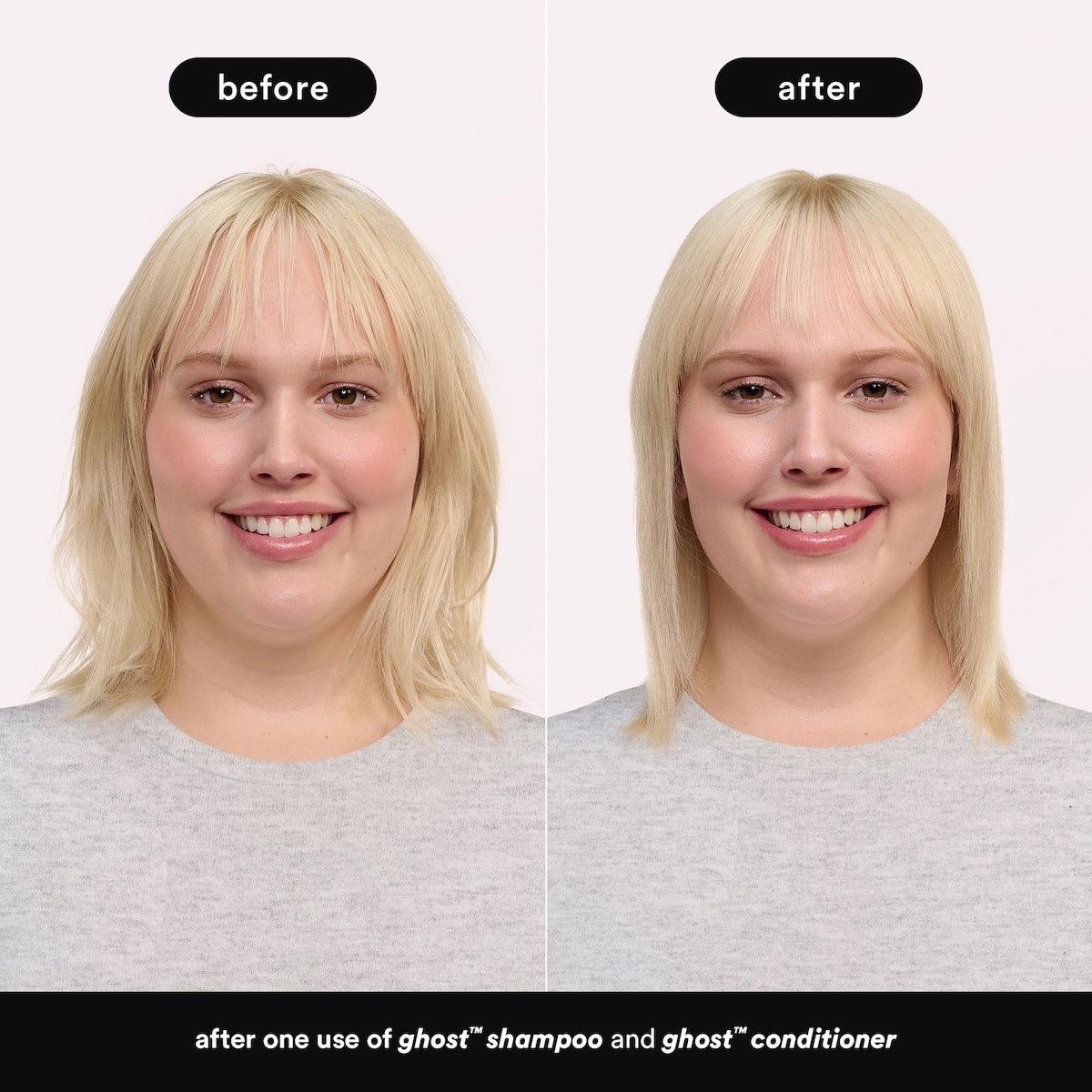- Ghost Conditioner – Moringa Oleifera seed oil and Cocoa Seed Butter nourish and help improve manageability; hydrolyzed quinoa and soy proteins support hair structure.