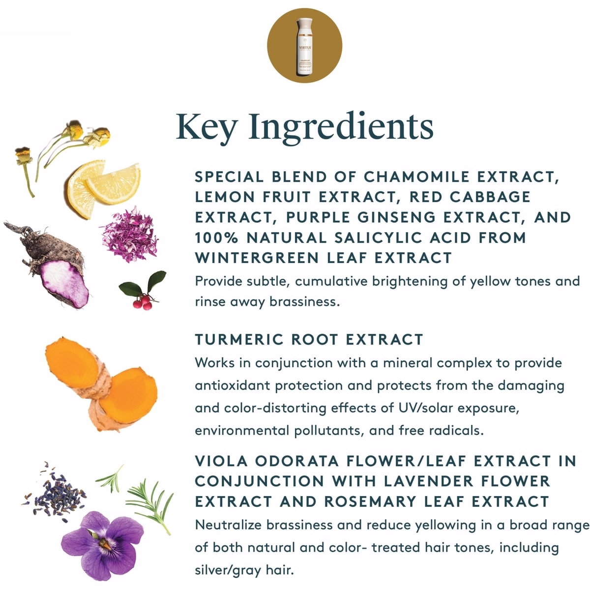 - Neutralizes brass and yellow tones to restore cool-toned brilliance on natural or color-treated hair.