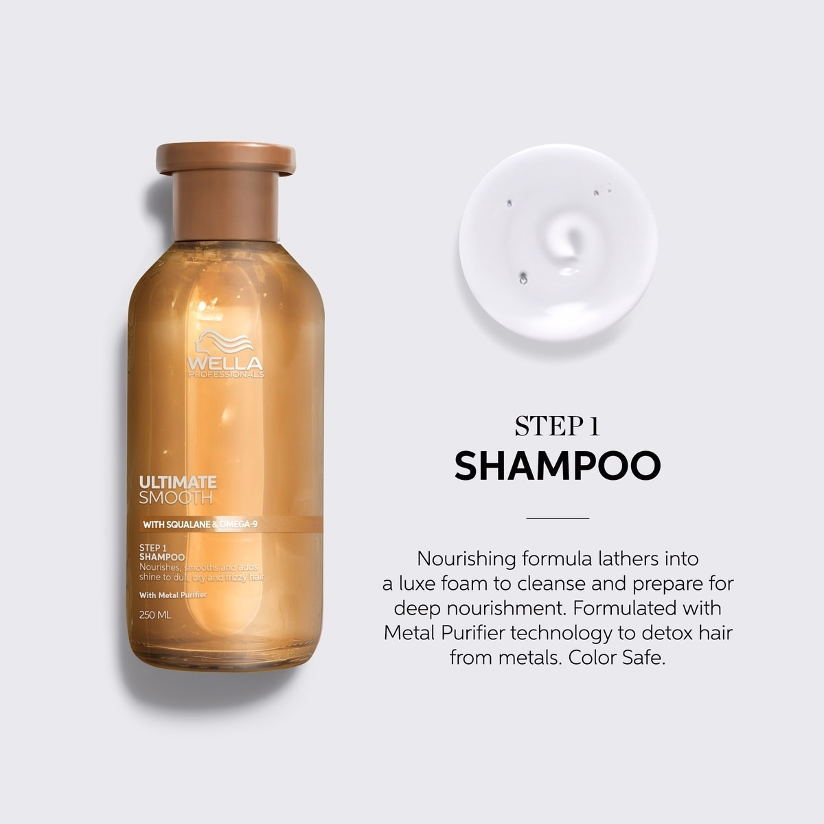 Apply the Ultimate Smooth shampoo to your wet hair and lather. Rinse and repeat if needed.
