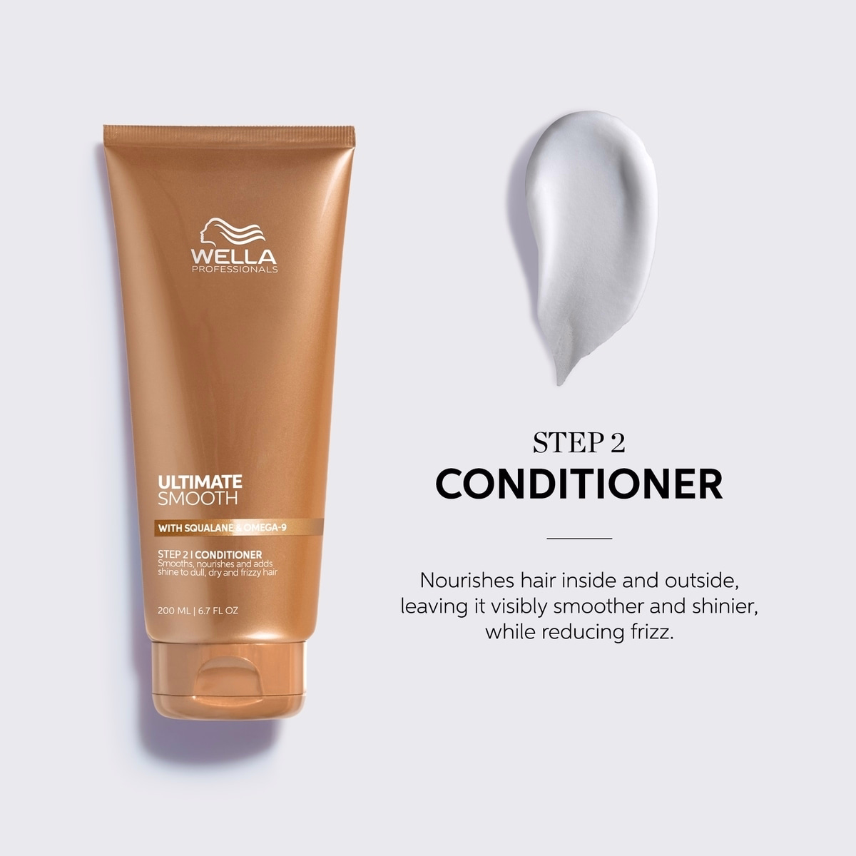 Apply the Ultimate Smooth shampoo to wet hair and lather, rinse, and repeat if needed. Then apply the conditioner to clean, damp lengths and ends, leave on for 30 seconds to 3 minutes, and rinse.