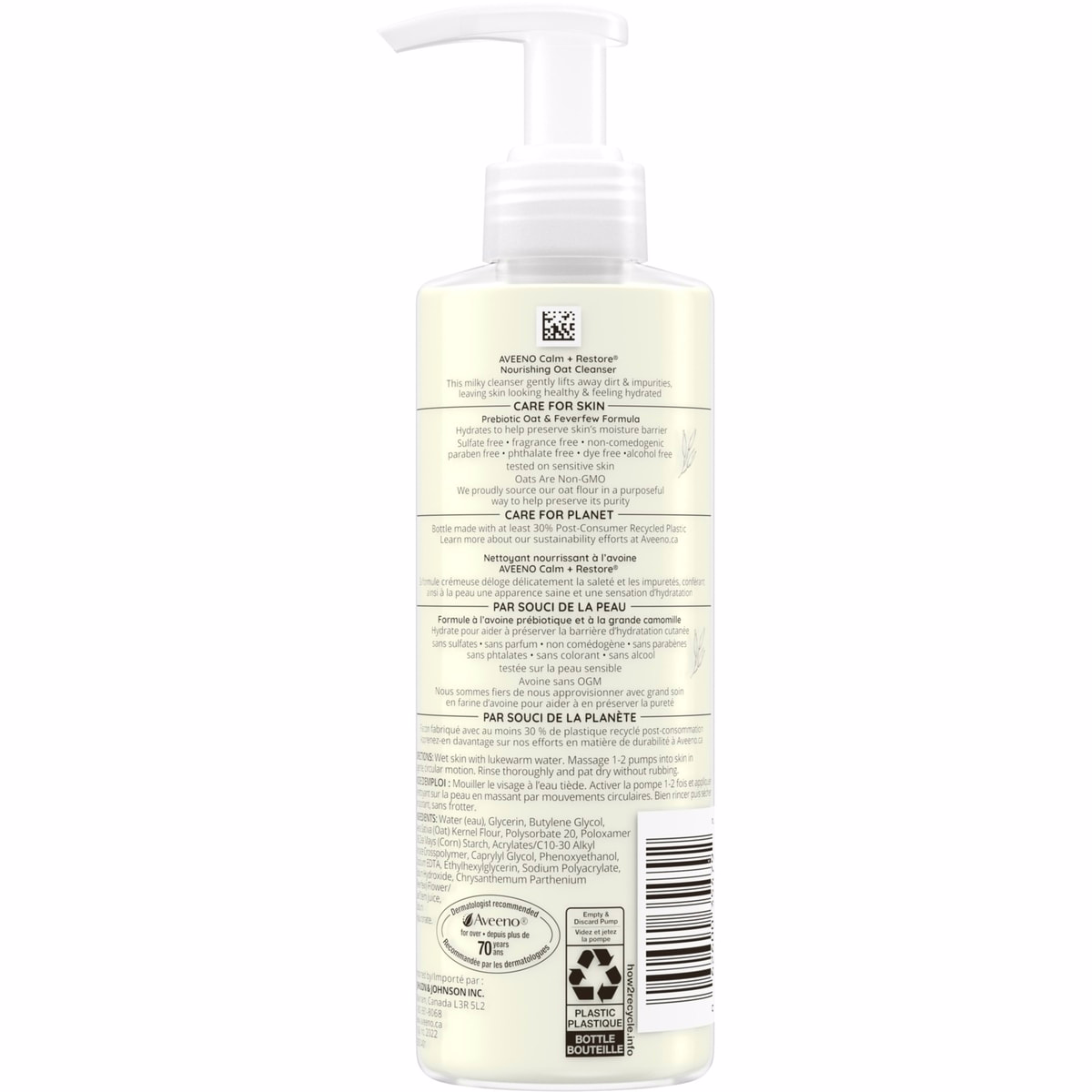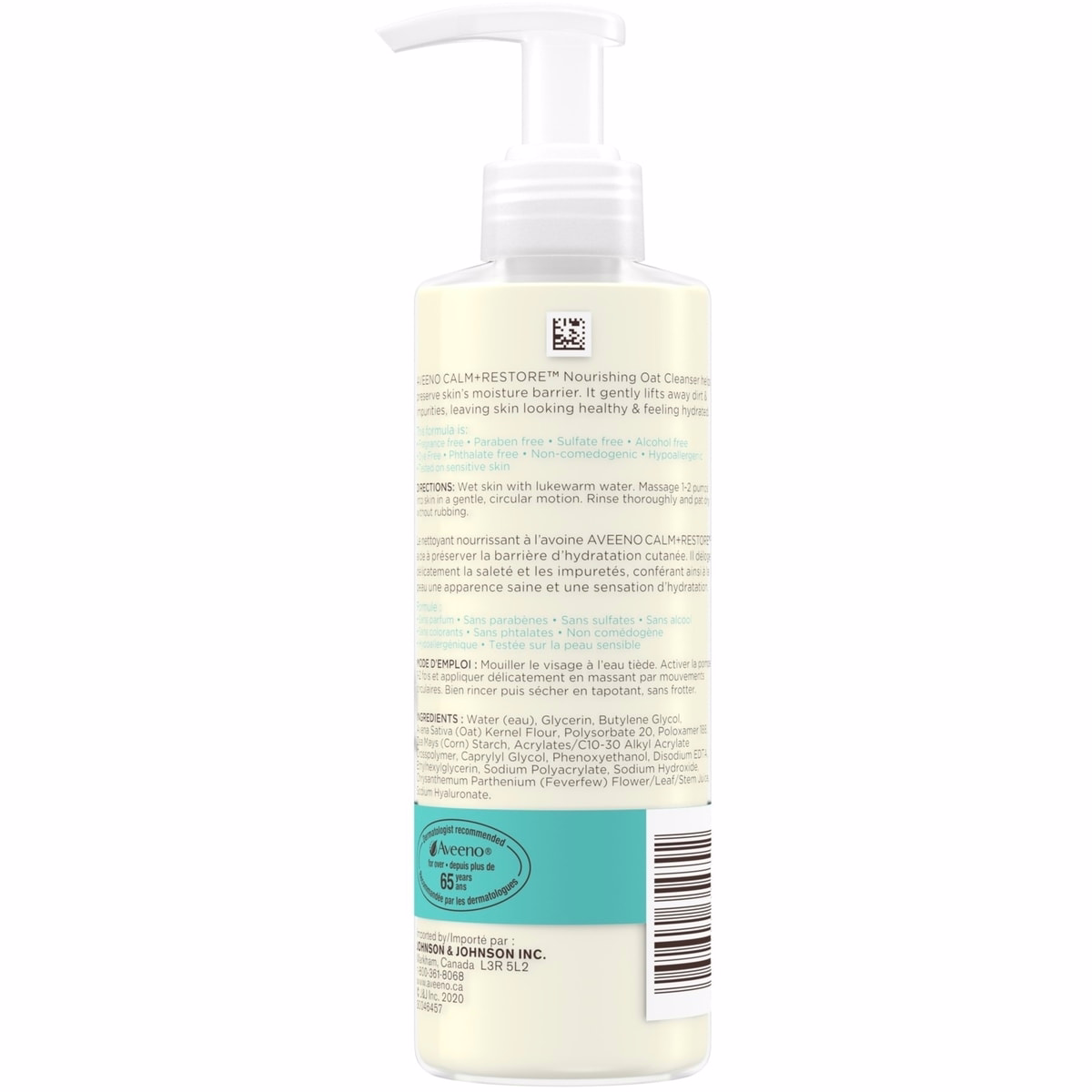 Aveeno Calm + Restore Nettoyant Nourrissant à l’Avoine pour peaux sensibles est un nettoyant facial doux et hydratant conçu pour les peaux sensibles. Cette formule de 232 mL élimine saletés et impuretés tout en aidant à maintenir la barrière hydrique naturelle de la peau, laissant le visage sain et hydraté. Fabriqué avec des flocons d’avoine nourrissants et du feverfew apaisant, c’est une option hypoallergénique et non comédogène exemptée de parfums, parabènes, alcool, colorants, sulfates et phtalates.