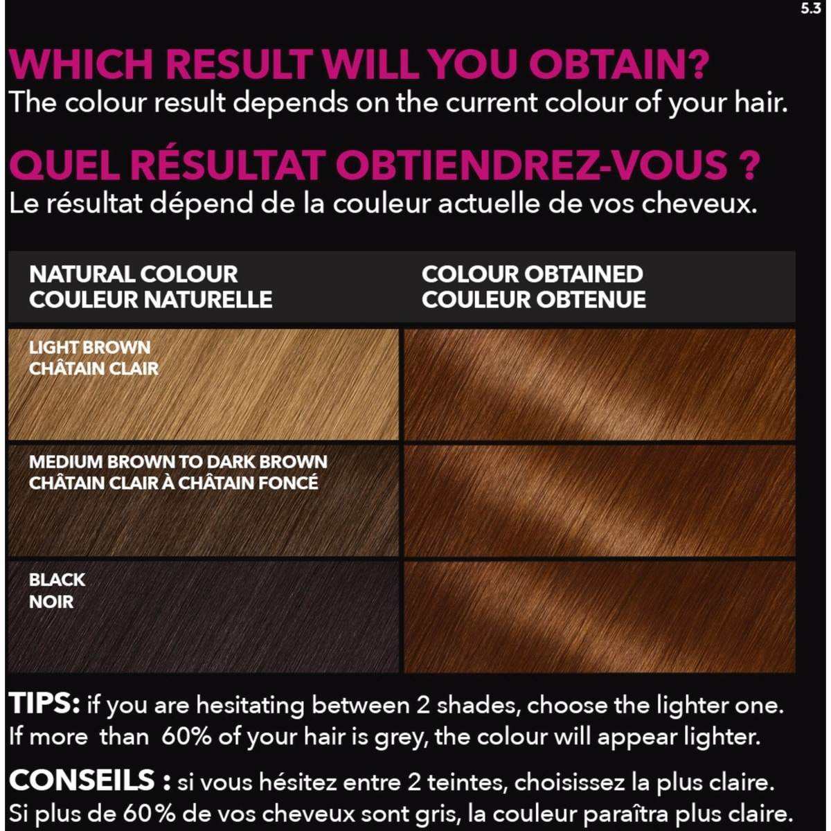 Une routine simple de coloration à domicile avec la formule alimentée à l’huile. Suivre les étapes exactement comme indiqué dans la notice pour obtenir les meilleurs résultats.