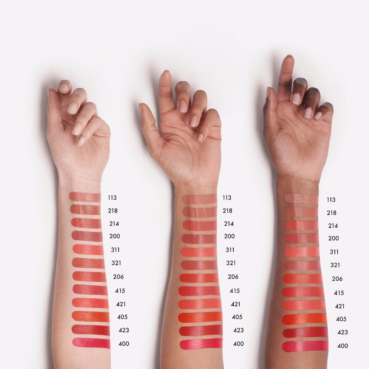 アプリケーターを唇の中心に置き、唇を合わせて転がし、外側へ広げてムラのない仕上がりにします。より軽いマット感を出したい場合は指先で軽くポンと抑えてください。このフォーミュラは、豪華で長時間持続するリップカラーを求める方に最適です。
