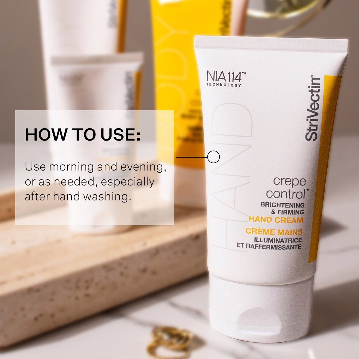 製品設計上、このクリームは即時の保湿を実現しつつ、質感と艶の長期的な改善をサポートするよう調整されています。ペプチド、植物由来エキス、エモリエントの組み合わせが、複雑な手間をかけずに目に見えるハンドケア効果を生むよう一体となって機能します。冷暗所に保管し、目に触れないようご注意ください。
