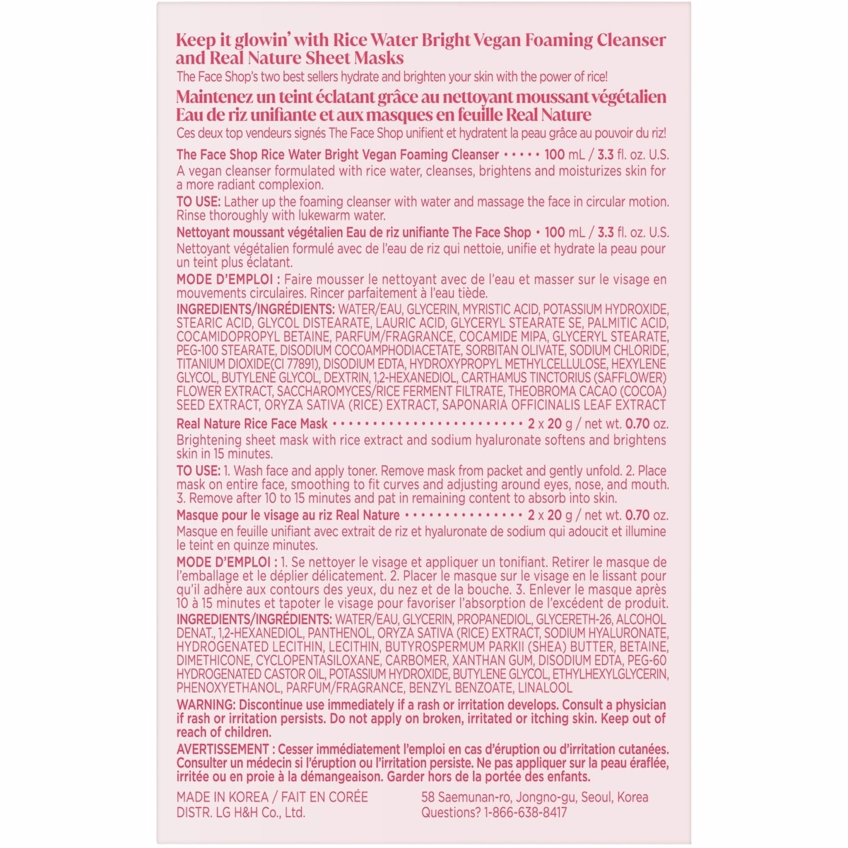 このセットは、米ウォーターとオイルを使って肌を潤いと明るさを与えるよう設計されています。敏感肌や香りに敏感な肌の方は、クレンザーの香りのため少量の箇所でパッチテストを行ってください。
