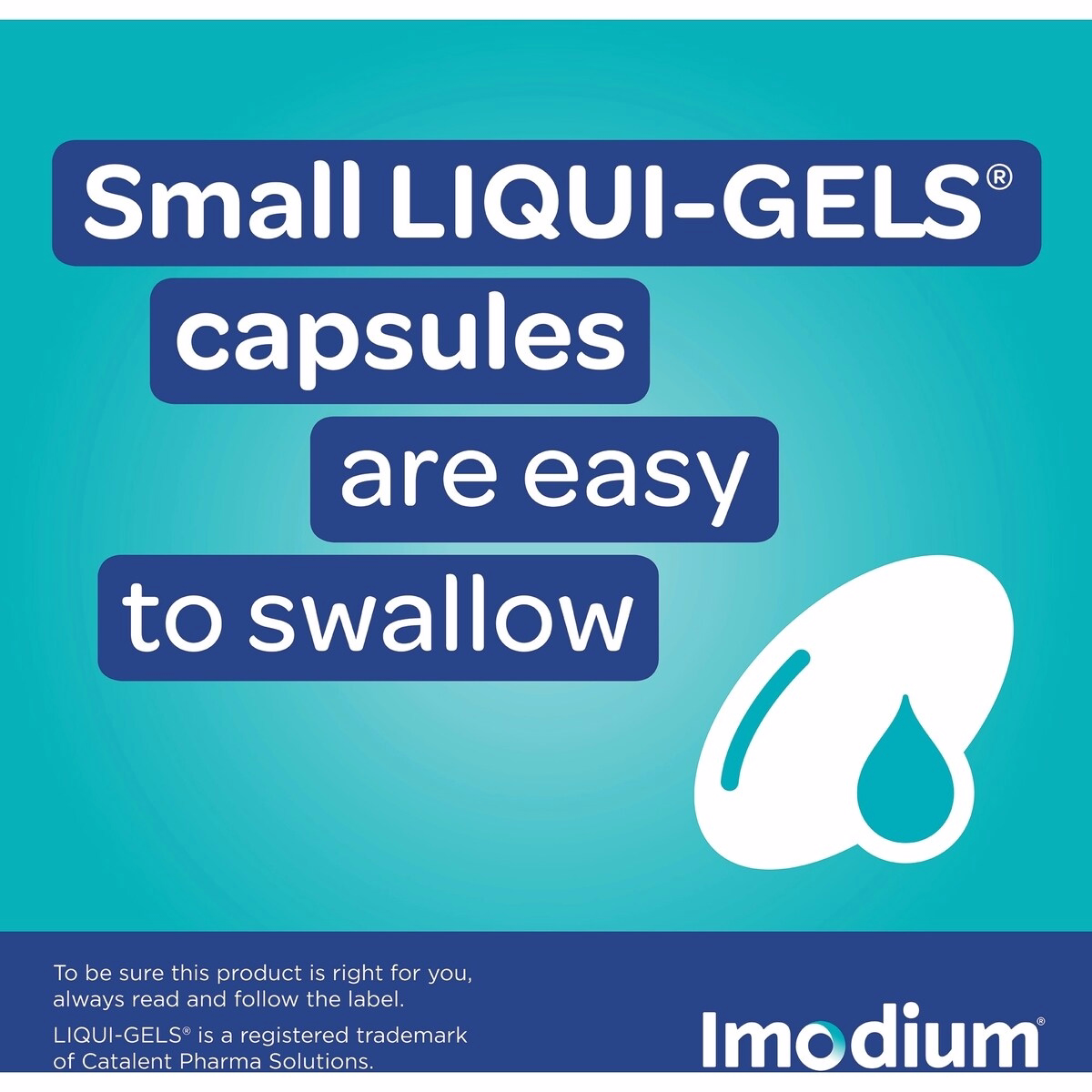 12정 버전의 Imodium Liquid Gels 를 사용하여 효과적인 설사 완화를 위한 단계입니다.