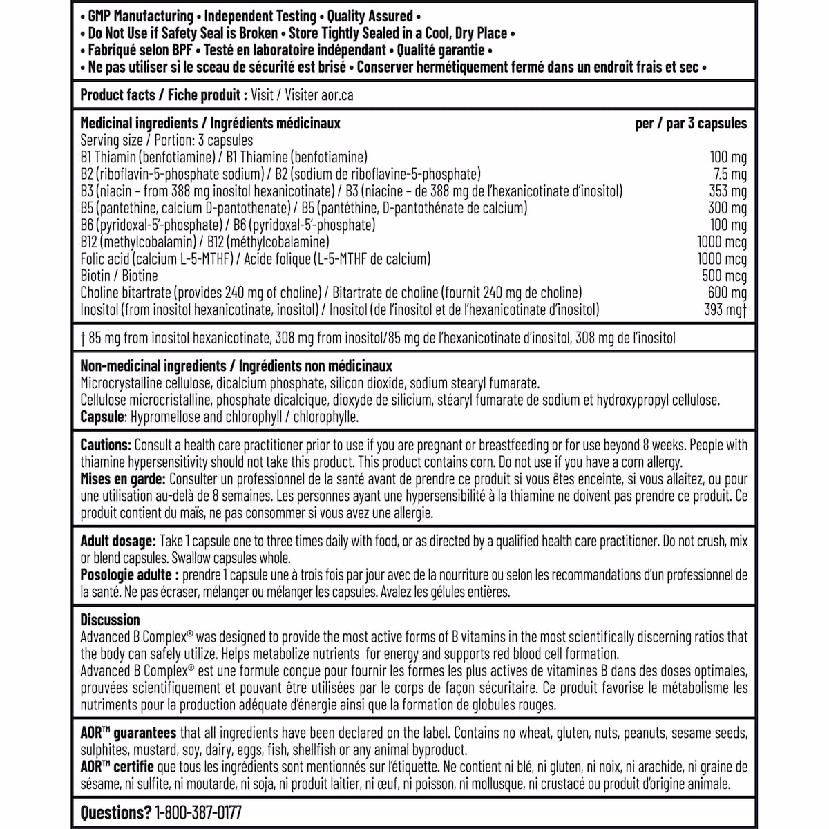 The Advanced B Complex is a full-spectrum B vitamin complex designed to support metabolism and red blood cell production. This product helps supply essential B vitamins in active forms for easier utilization by the body. It is ideal for adults seeking balanced B vitamin intake in a convenient capsule format.